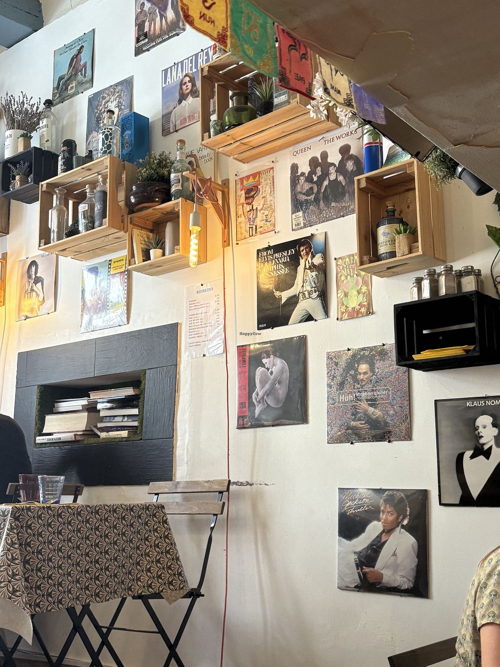 Süße kleine Höhle, schnell voll, rechtzeitig da sein oder reservieren. Zwischen lauter Plattencover haben wir vorzüglich gespeist. Gute Auswahl, alles vegan. Guter Preis. Supernetter Inhaber. Ging auch alles zügig.