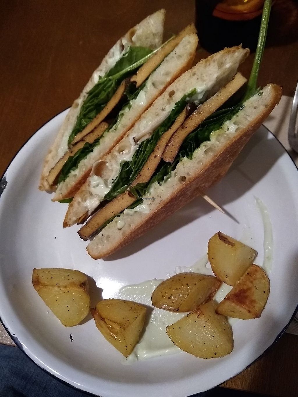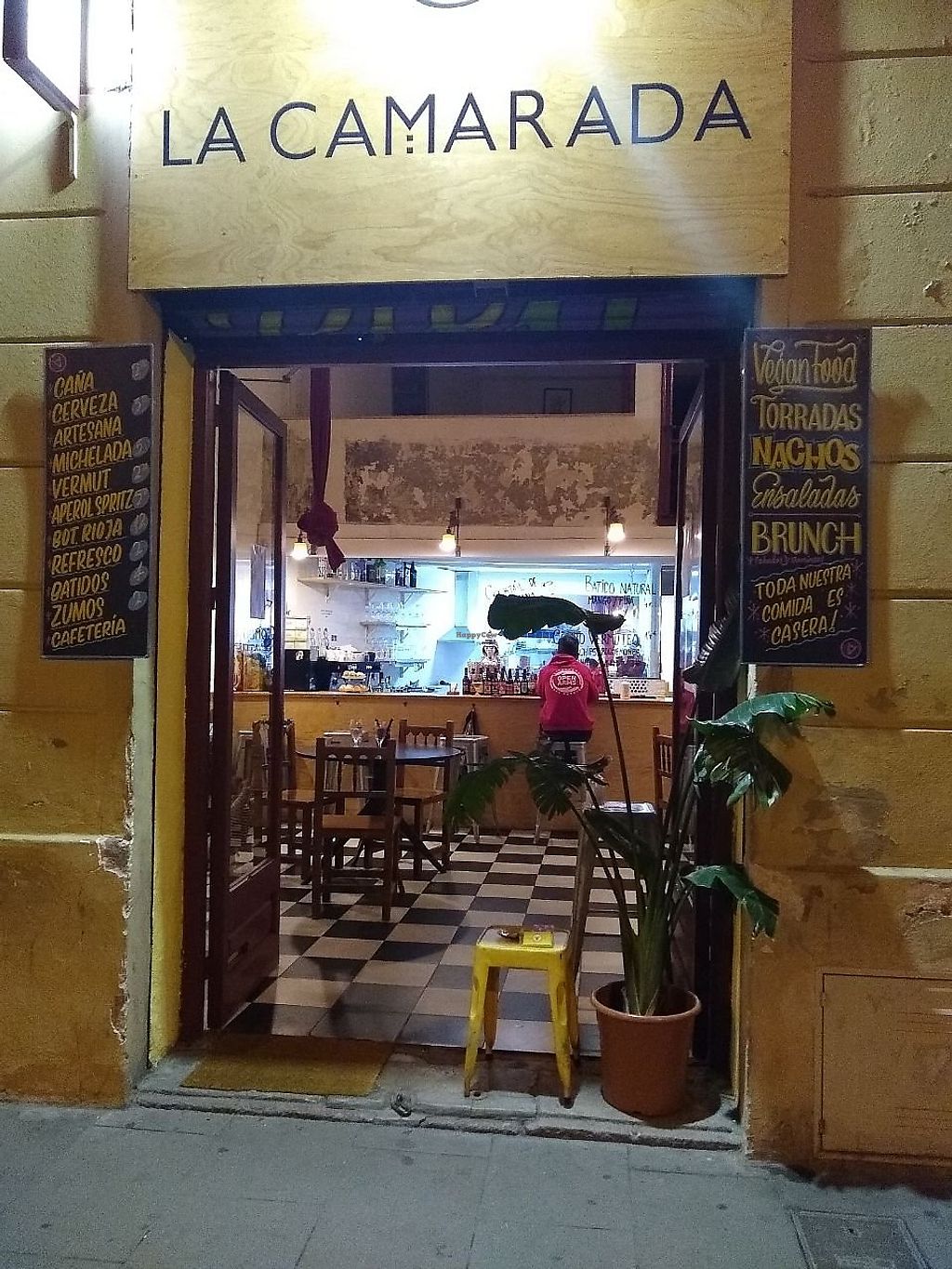 Serves meat, vegan options available. Tapas bar with vegan dishes, art exhibitions and live music. Menu changes weekly, other vegan dishes available are hummus, tabouleh, bravas with vegan sauce, rice noodles with mushrooms and edamame. and marinated tofu toast. Reported closed May 2022.