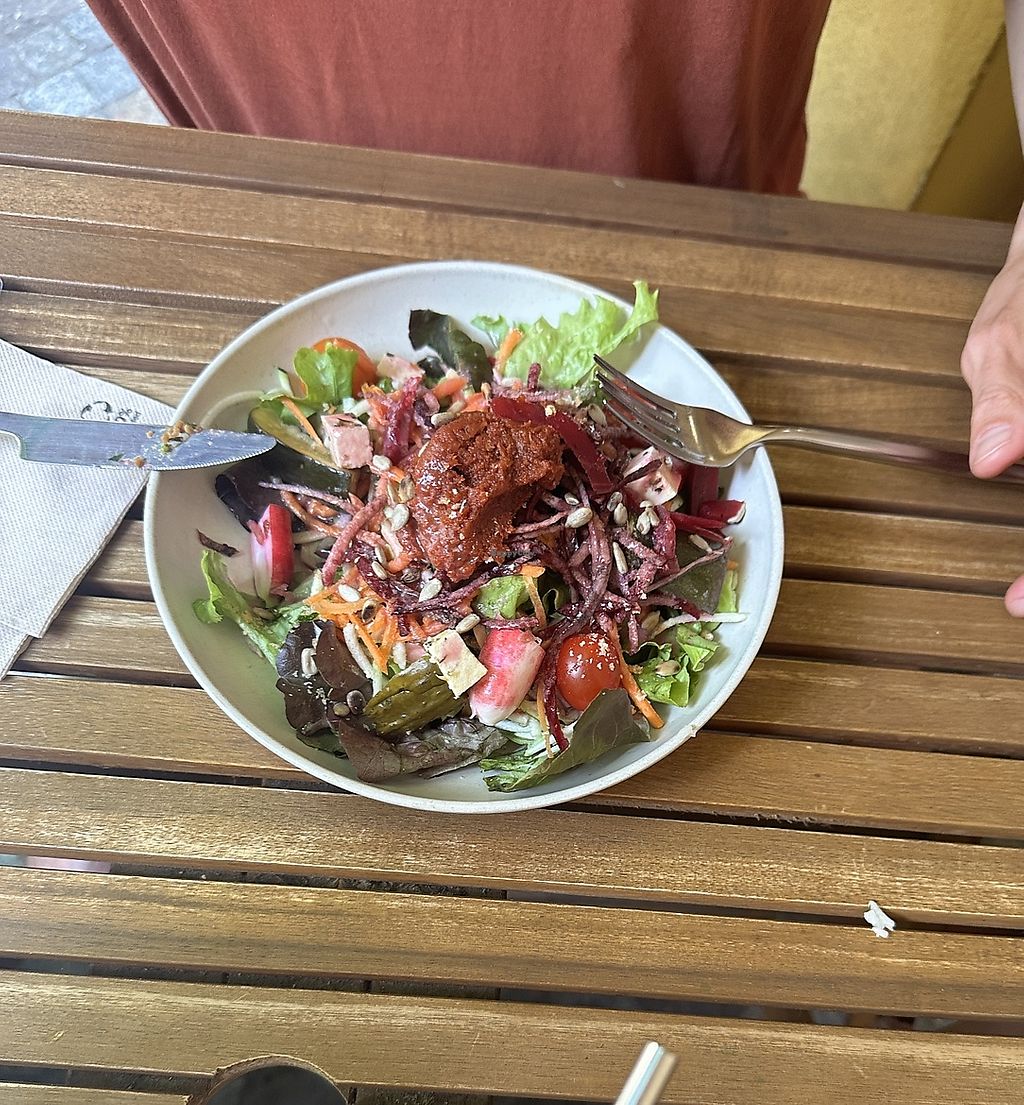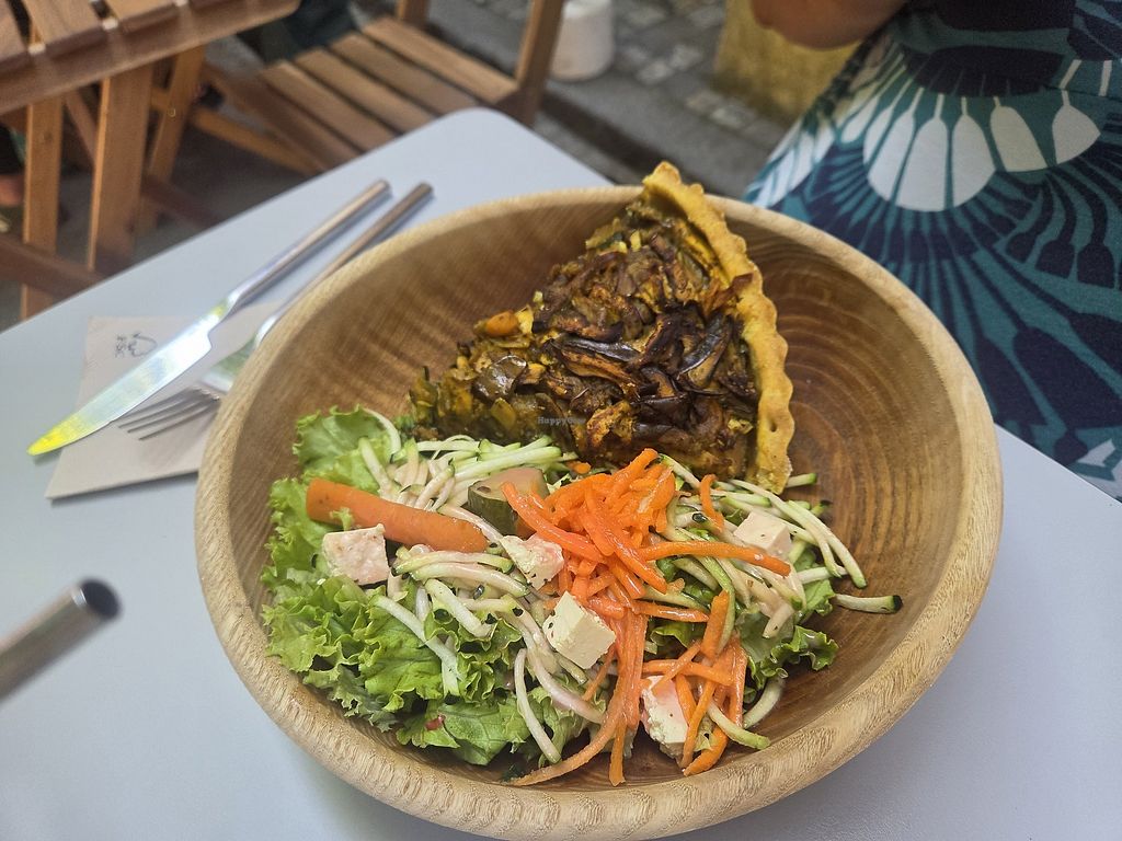 We came here in March for lunch and had the dish of the day (which was pumpkin, rice and salad) and a leek tart with salad. It's a cute place and we appreciated that they use organic and local produce as well as aim for zero waste. The staff was very nice and they explained the dishes in English. There's outdoor seating in the courtyard as well. Lovely place!