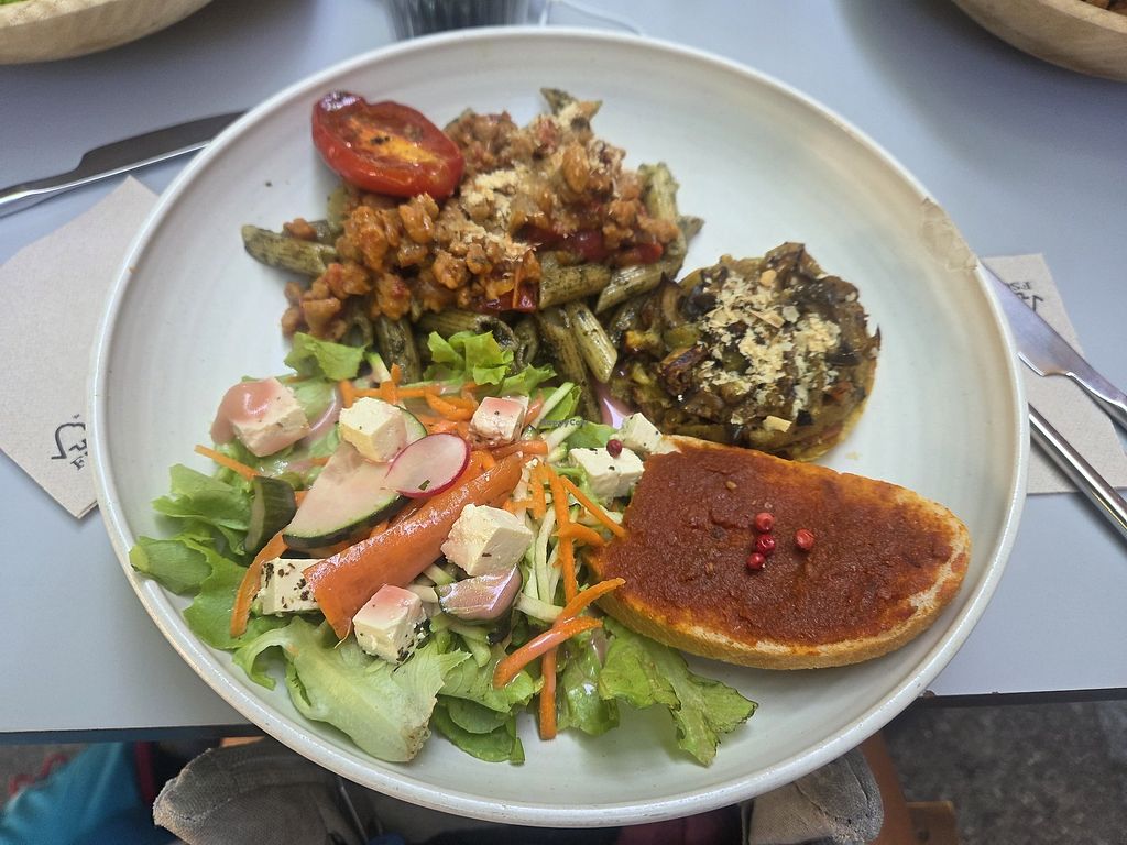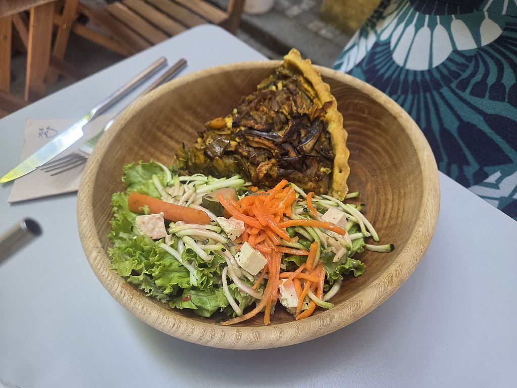 Read moreThe tartes were a quiche made with tofu and a caramelised onion and aubergine tartlette. The assiette du jour was a macaroni ragu.