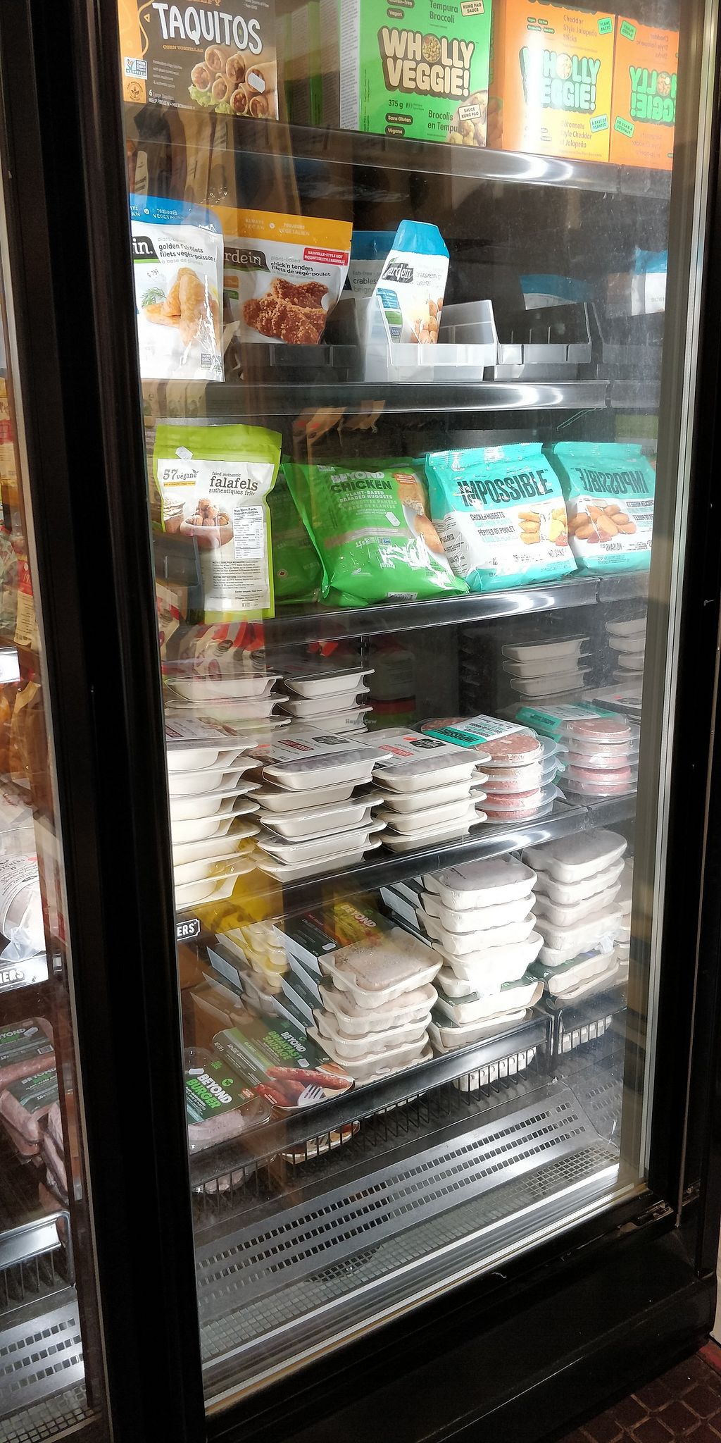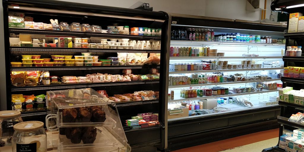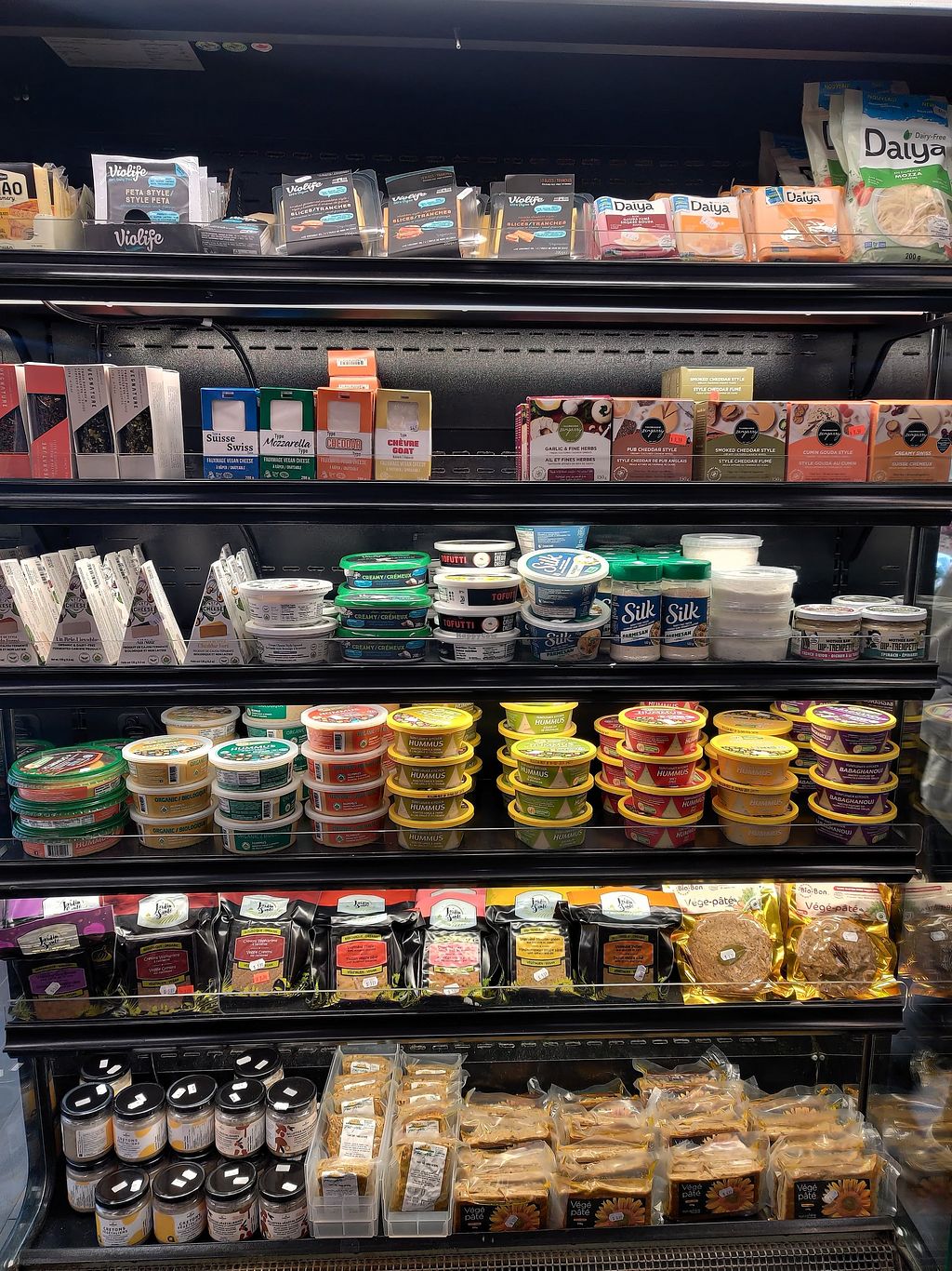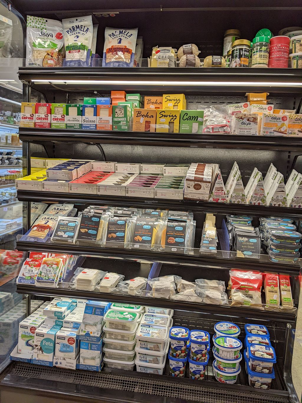 A dedicated fridge for vegan meats as well good vegan cheese selection. Lots of dry goods and a deli counter with salads