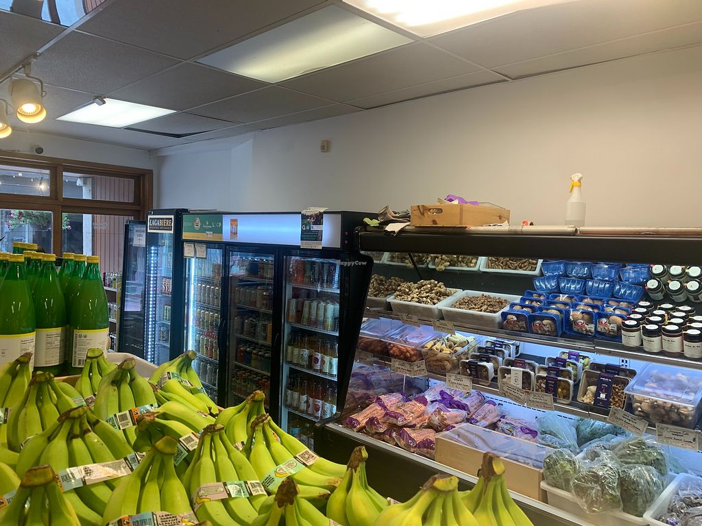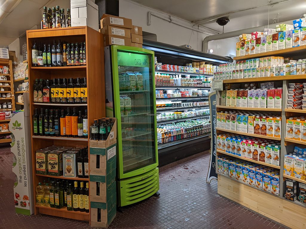 Belle sélection de produits de base pour cuisiner et de fausses viandes. Dommage que le comptoir à repas chauds ne soit plus en service, c’était un atout certain dans un quartier ou très peu de restos offrent des options véganes sérieuses.