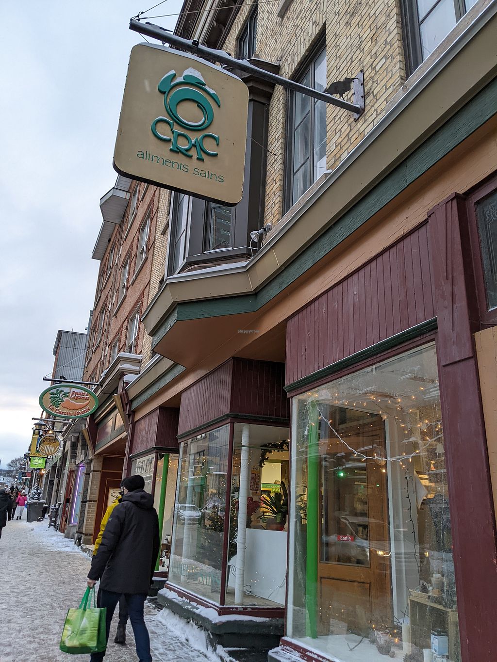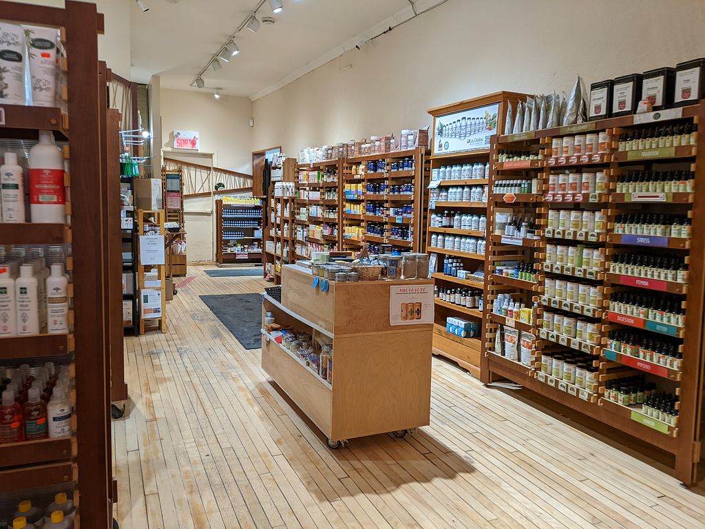 Natural food store (Le Crac) stocking organic produce, bulk food, supplements, and body care products. Open Mon-Fri 10:00am-7:00pm, Sat 10:00am-6:00pm, Sun 11:00am-6:00pm.