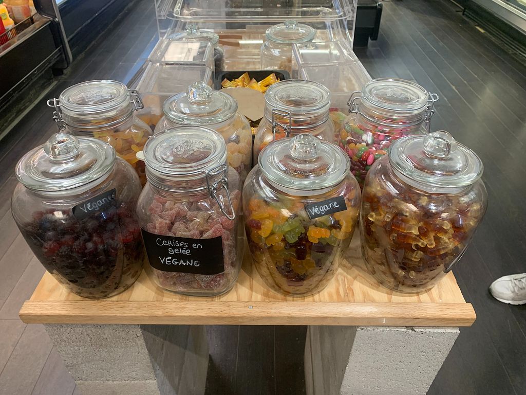 La Carotte Joyeuse offers everything a vegan could want: vegan protein powder, candy, milk, pre-made sandwiches, and much more!
