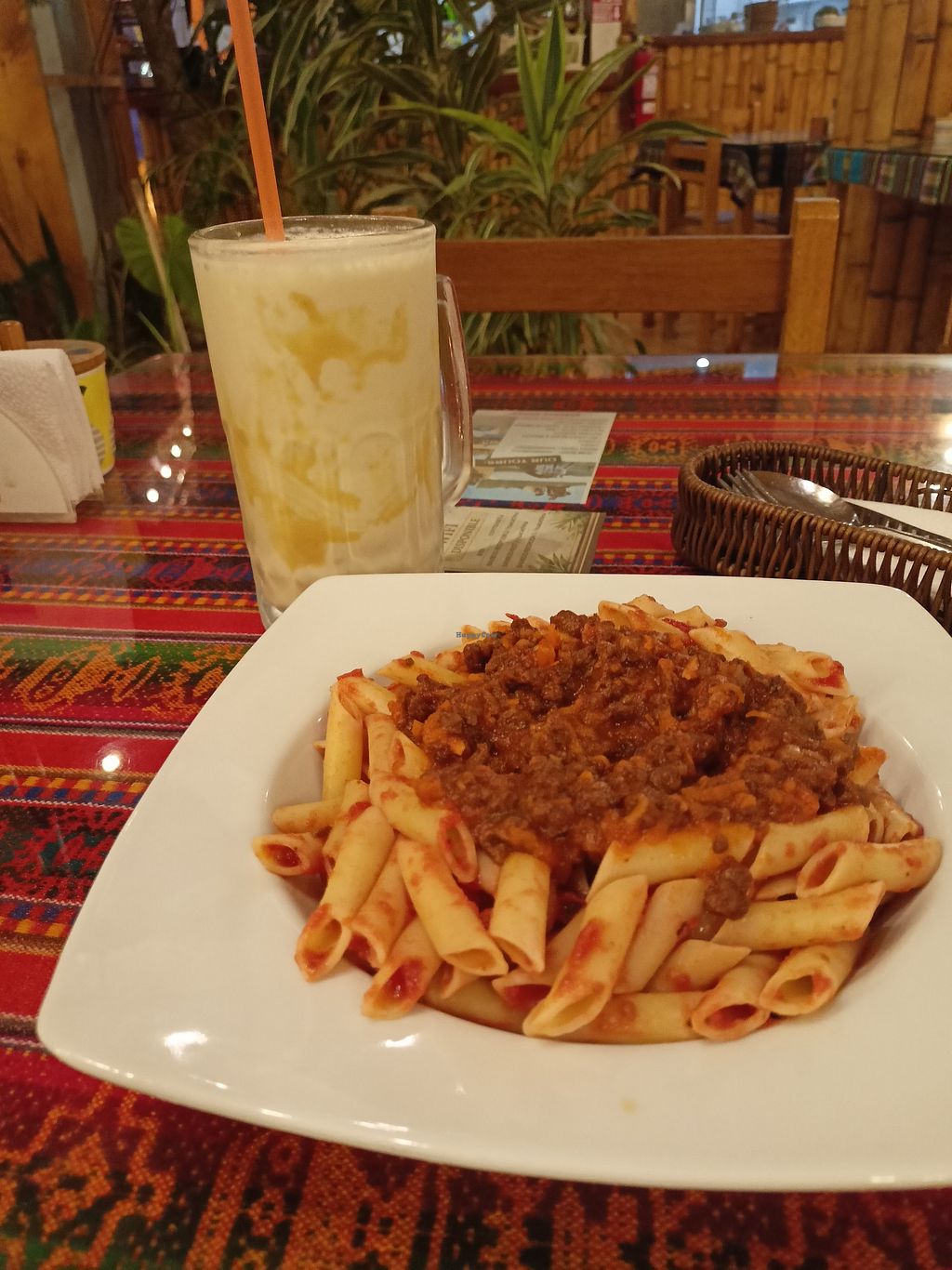 La casa de Bamboo has quite a nice choice for vegans and also includes a vegan option in their menu del dia. We had Spaghetti Bolognese, the quinoa salad (for take-away) and the chickpea burger. All was really nice, just the burger patty wasn't cooked well and the fries were soft and soaky like in all other peruvian places. The quinoa salad however was super yummy with a lot of fresh vegetables and herbs. Also, the portions are reasonably big so one plate per person is definitely enough 😆