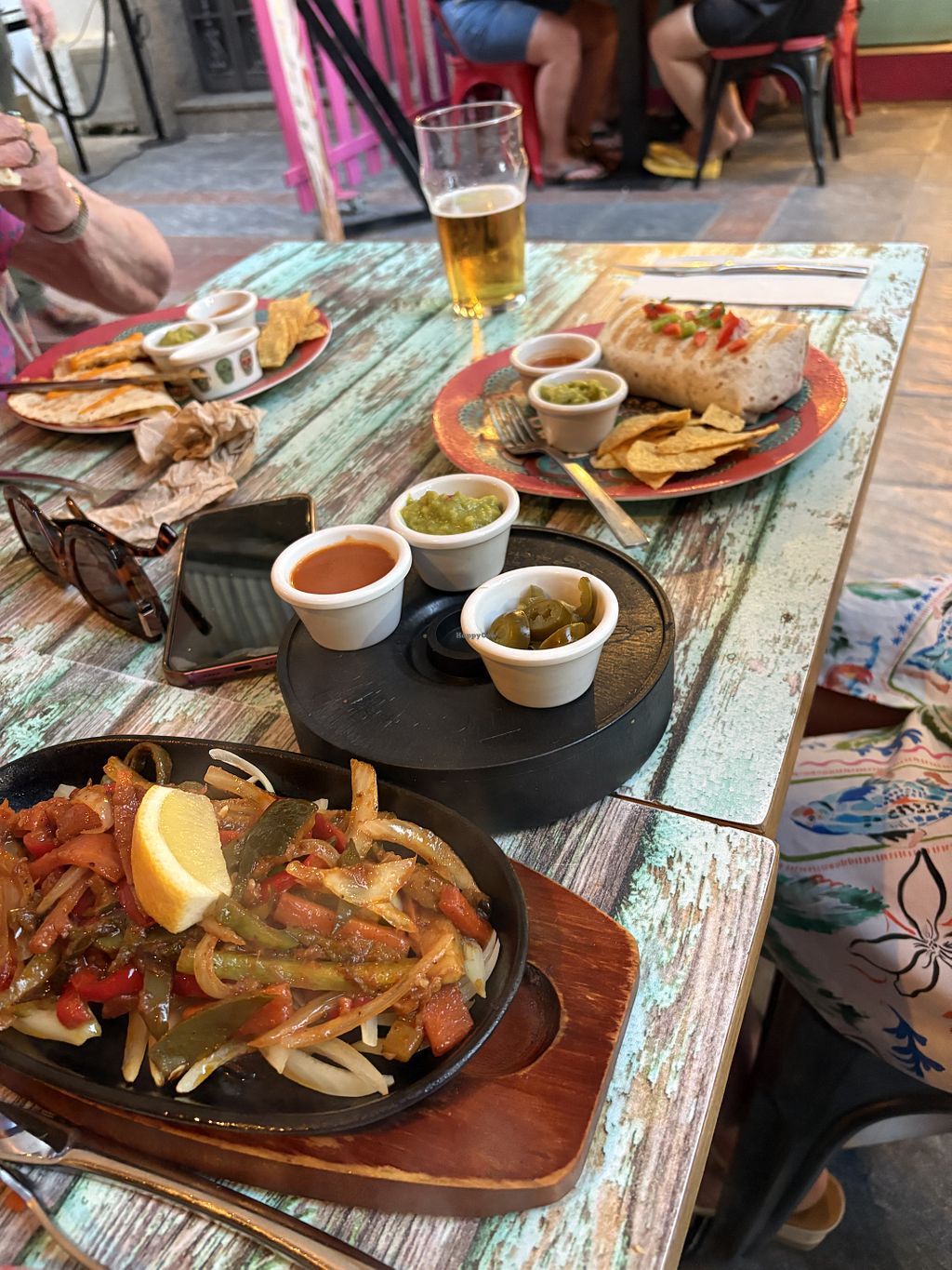 Ended up here 2 nights because the vegan burrito was SO good! Interesting and lively setting outdoors, with flamenco dancers, singers, handbag sellers and beggars all visiting the tables (part of the ambience!) Really enjoyed the burrito plus the margaritas!