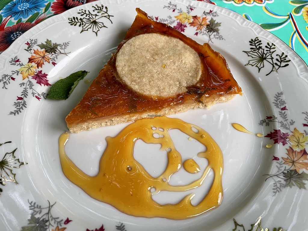 Tart with apricot compote, fresh mint leaves and apple and elderflower…