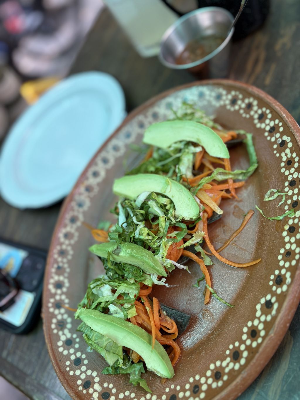 Tampico style mushroom carnitas with rice, guacamole,nopales salad & …