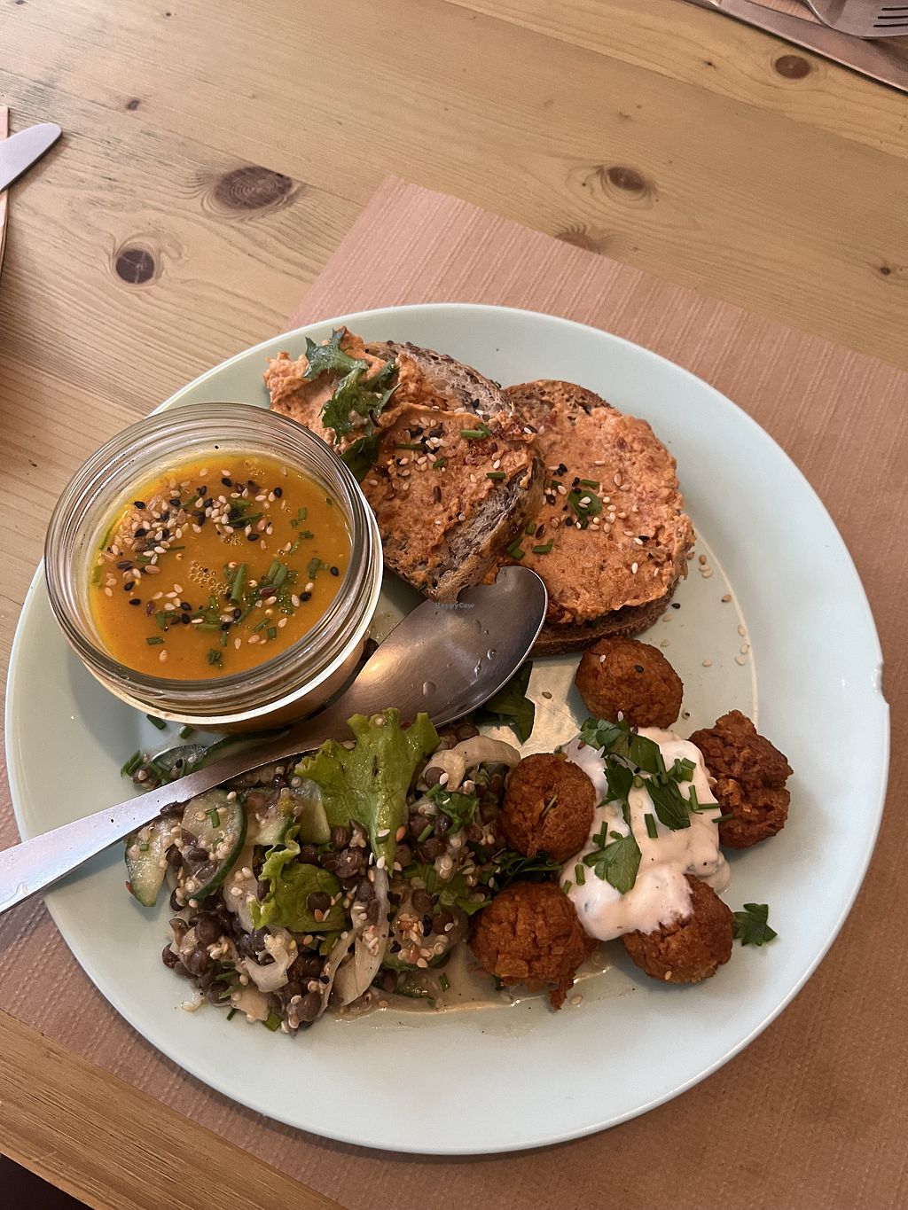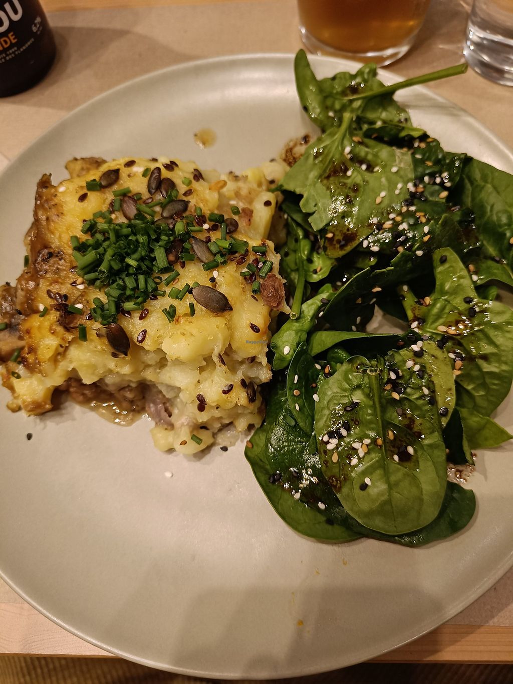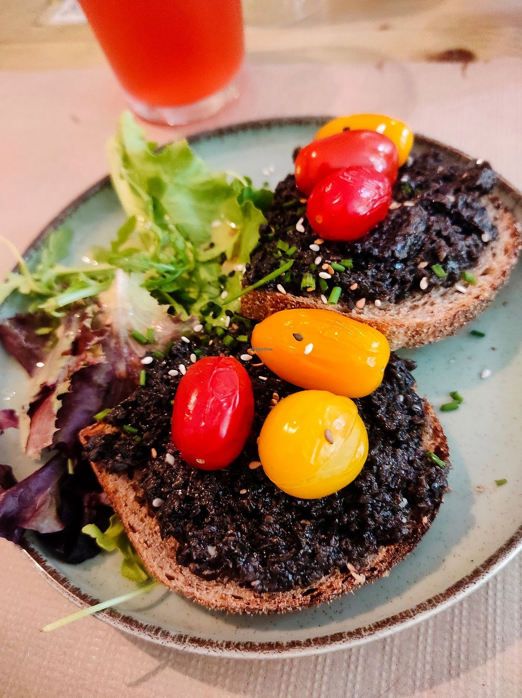 First of all the service was excellent plus fully vegan so didn't have to keep checking. Starter was a nice tomatory thing with olives and veg. 2nd course was a salad/veg bowl with a minty sauce and quinoa.