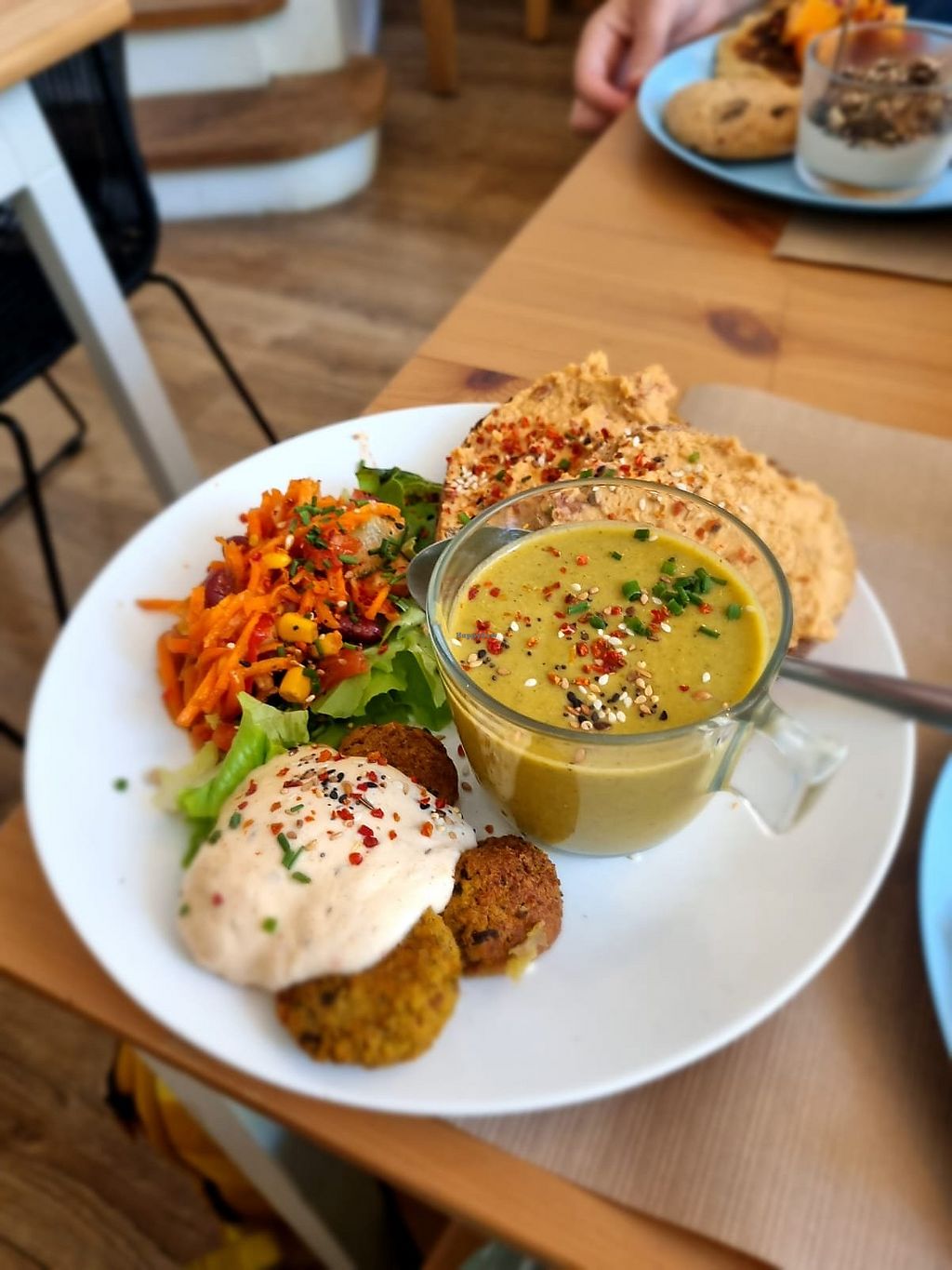 Read moreIt’s great that everything is fully vegan. We opted for the cold soup and tacos with hummus to start. Both went down well. I’m not used to cold soup - the eyes expect hot. The taste buds detect cold. Anyway, it was enjoyable although I would have liked some bread with it. For the main course we had a burger and a salad. Both were excellent and we were full so opted for takeaway deserts.