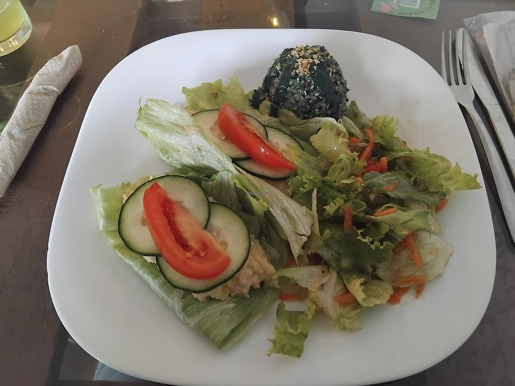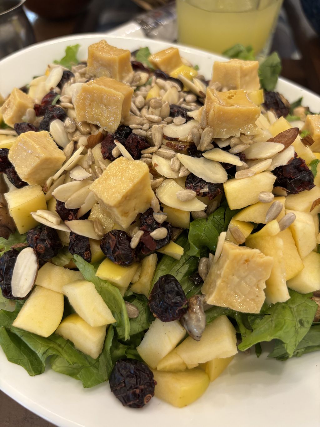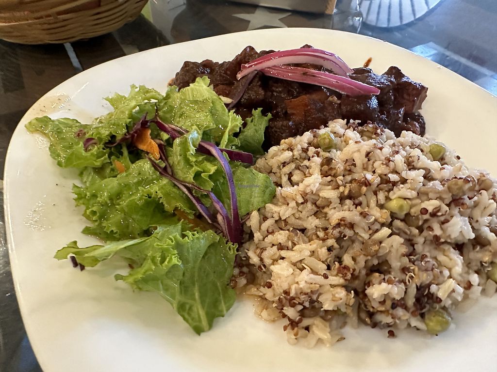 Menu del día. Adobo de hongos, arroz proteico, y ensalada
