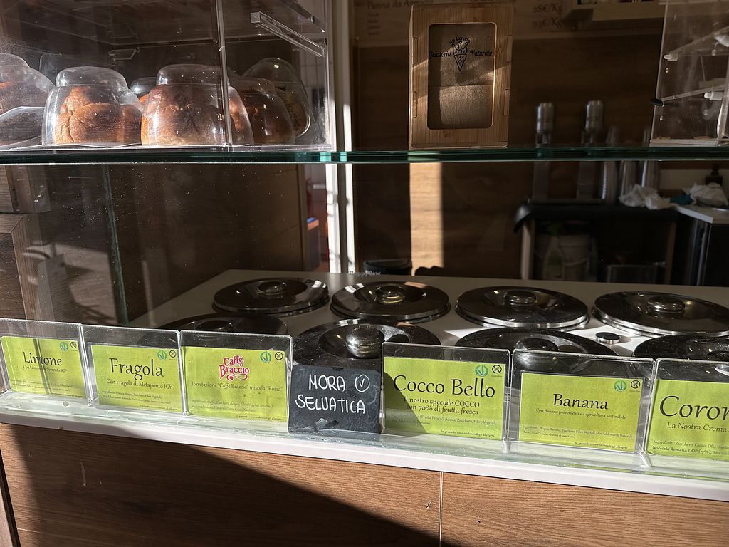 Finalmente una gelateria "normale" che dia davvero delle opzioni vegane degne di nota. Ci sono sempre circa una decina di gusti che variano periodicamente. Presente anche la panna vegana!
