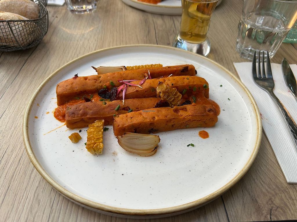 Probably the best vegan 3-course dinner I've had in France, and I'm living in Paris since few months. Starter gazpacho was delicious, main mushroom risotto very tasty and sweetsweet dessert! Only cons I'd say are that the risotto was served way too hot and I had to wait for it to cool down (in a 36 degree heat) and the dessert was super sweet and I managed to eat only half of it. Absolutely recommend! Also recommend to reserve a table even on the same day.