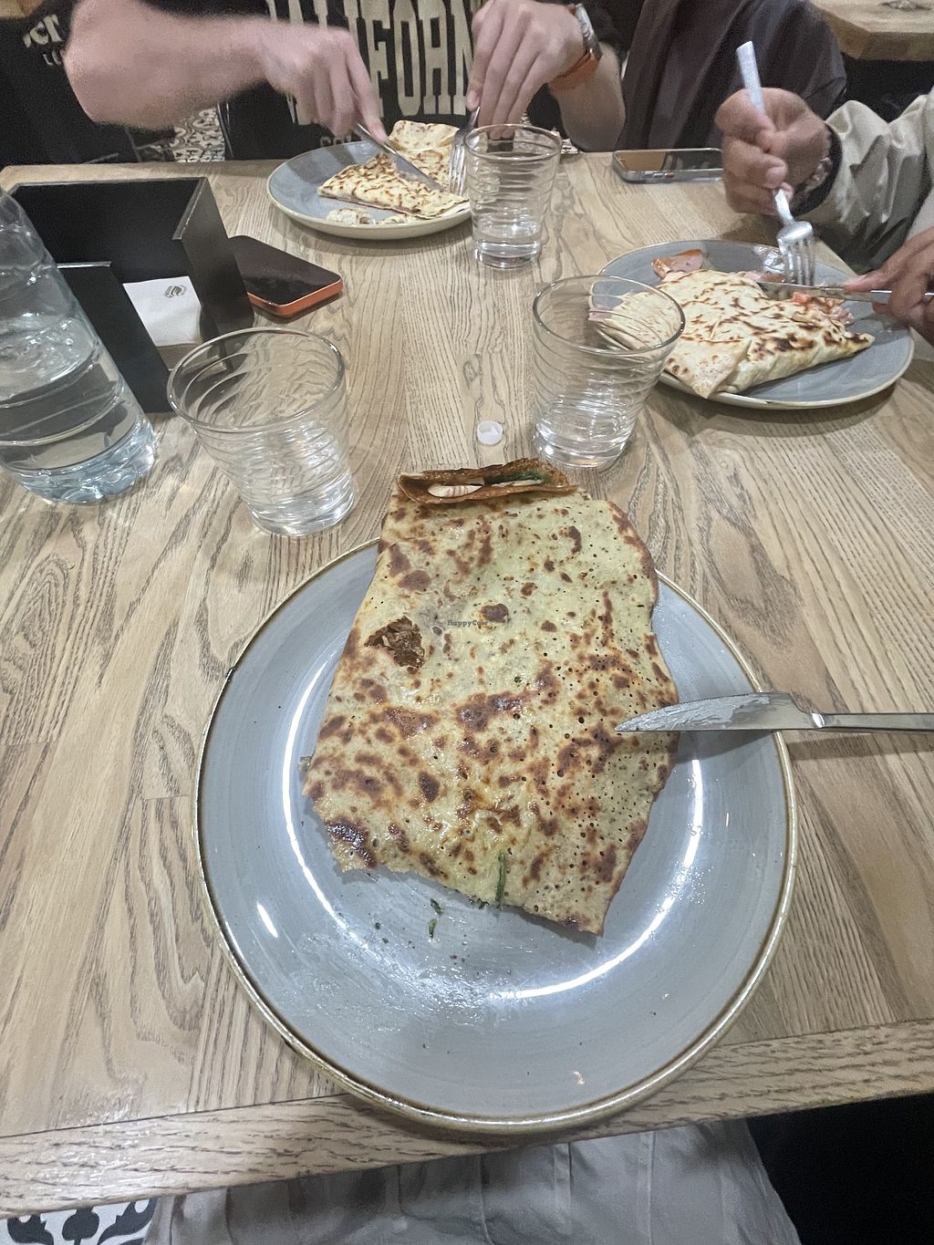 Crep vegetariana: espinacas, champiñones, papas arrugadas, queso, cebo…