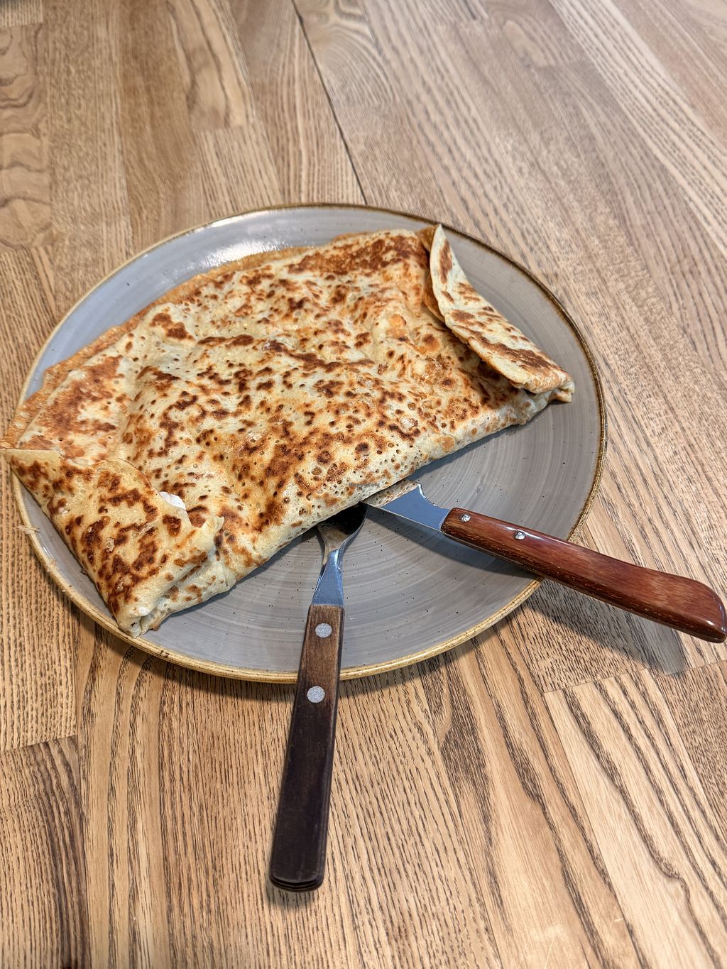 Crêpe with spinach, mozzarella, mushroom and vegan chicken