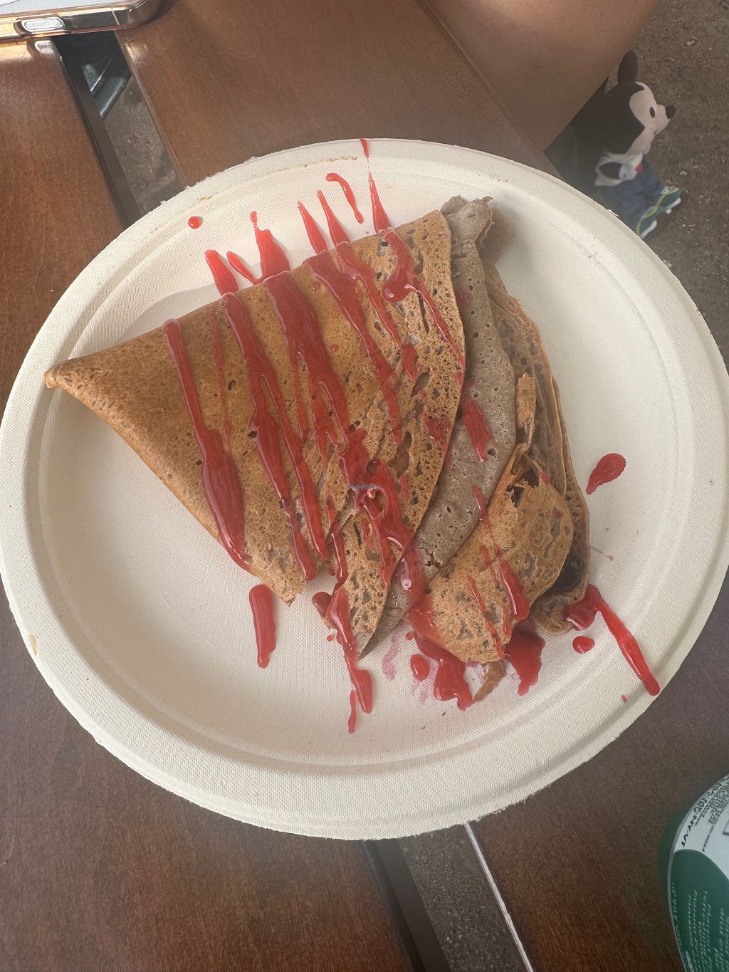 I ordered the allergy-friendly crepes which are buckwheat crepes (gluten free) with a nice red berry drizzle. While light and fluffy, the buckwheat does make it earthly and hearty. Fully enjoyed these crepes. Would have liked more topping options.