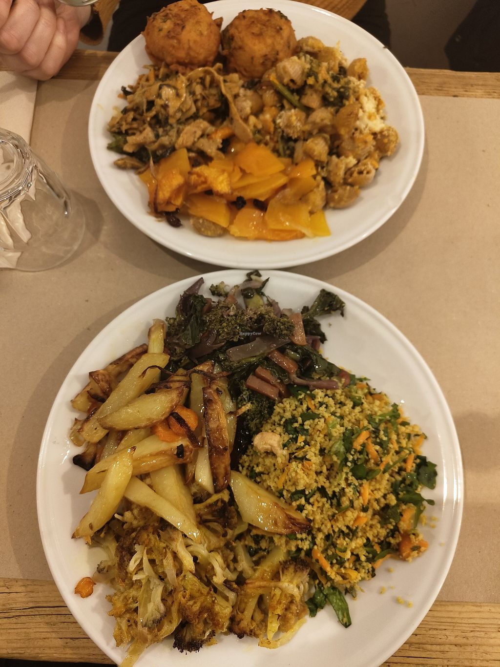 We went there twice because they offer different items every day. We really appreciated that the staff cared about vegan options and clearly told us which dishes were vegan. You can choose a combination of different meals served on one plate — either 2, 3, or 4 options. For us, the 3-meal combo was the most suitable. Our favorite items were the chickpea fritters and the gnocchi. They also take care of some stray cats, which is just an extra point in my book.