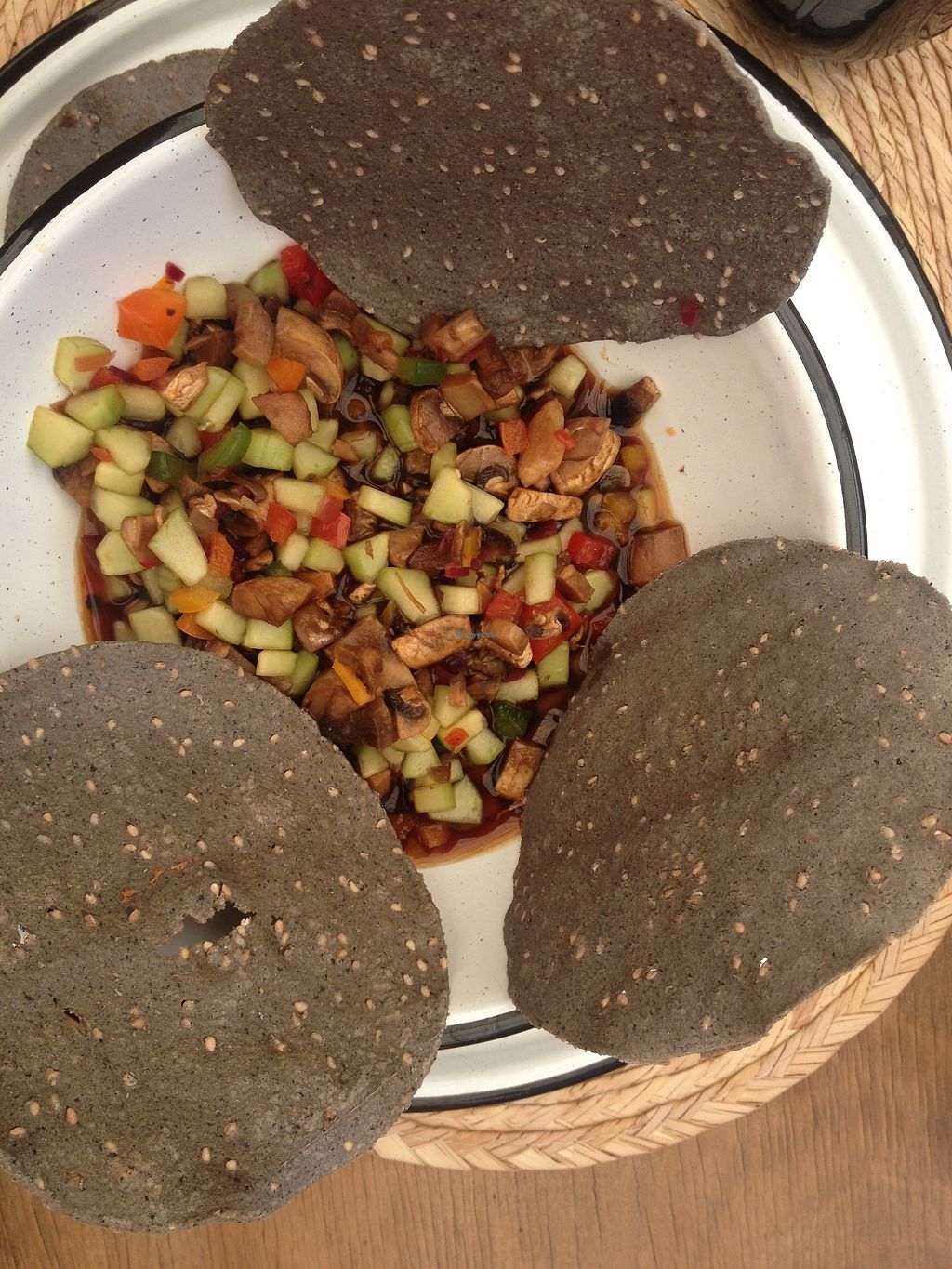 After wandering around in Cholula on a Sunday and finding the other places closed, I discovered this place by coincidence. What drew me to it was the atmosphere, when I realised it was 100% veggie I was over the moon! The menu and choice was overwhelming, but I settled for a mushroom ceviche that was fresh (maybe a little too cold, I'm guessing they took at least one ingredient from the freezer) with some crunchy blue corn tostados. A pity they only had one dessert available, because I was looking forward to a chocolate brownie with avocado ice cream. They also offered a generous try of the vegetable crisps they sell. Oh and the black lemonade (with active charbon and ginger) was particularly refreshing.