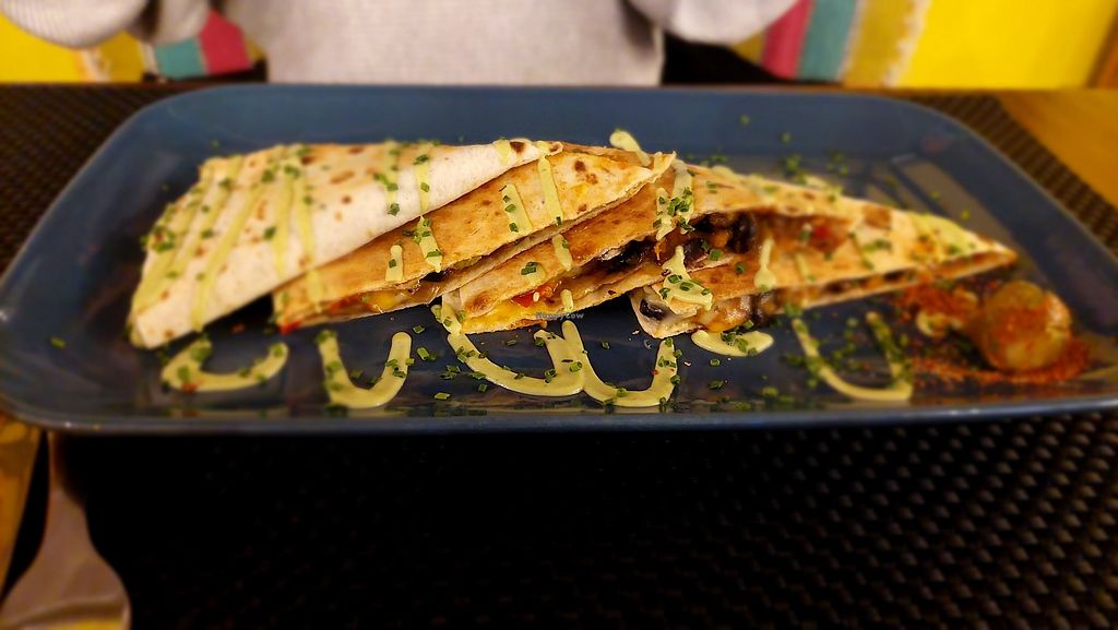 We had the vegan tequenos as a starter, vegan burrito and asked to do a vegan quesadilha(they switched the cheese with vegan cheese), we also aked for churros with red berries as a dip for dessert. A very cool place to go if you like mexican food!