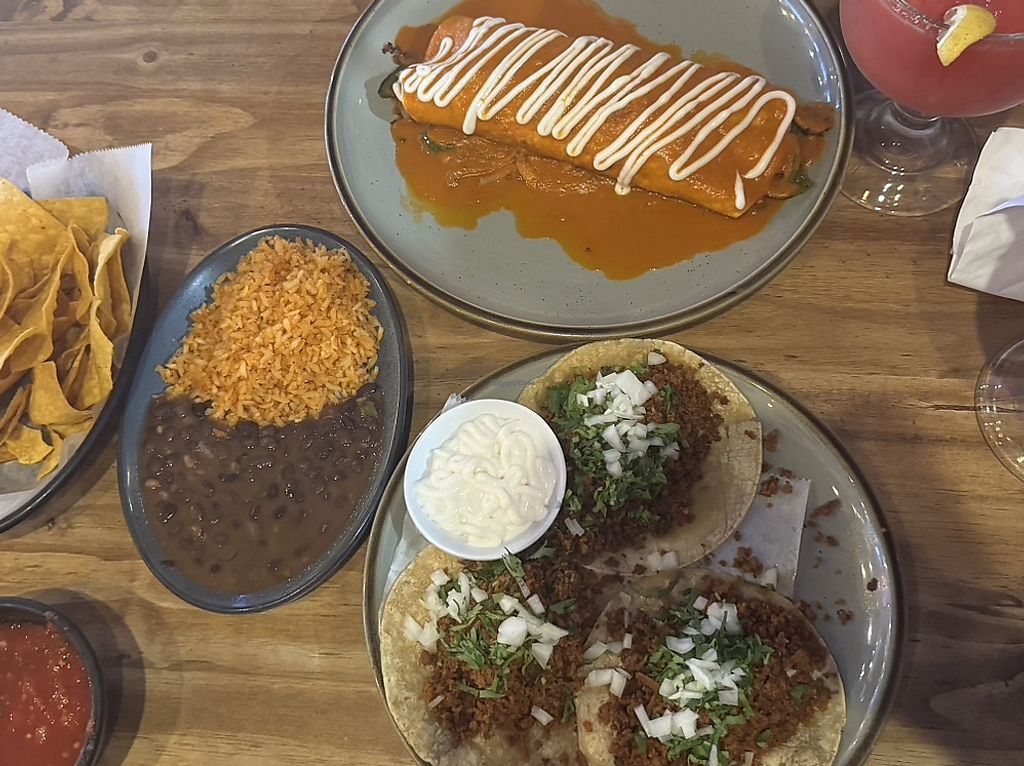 Several vegan options on vegan menu including dip and dessert! “Beef” tacos were good but kind of plain. Salsa and vegan dip were phenomenal!