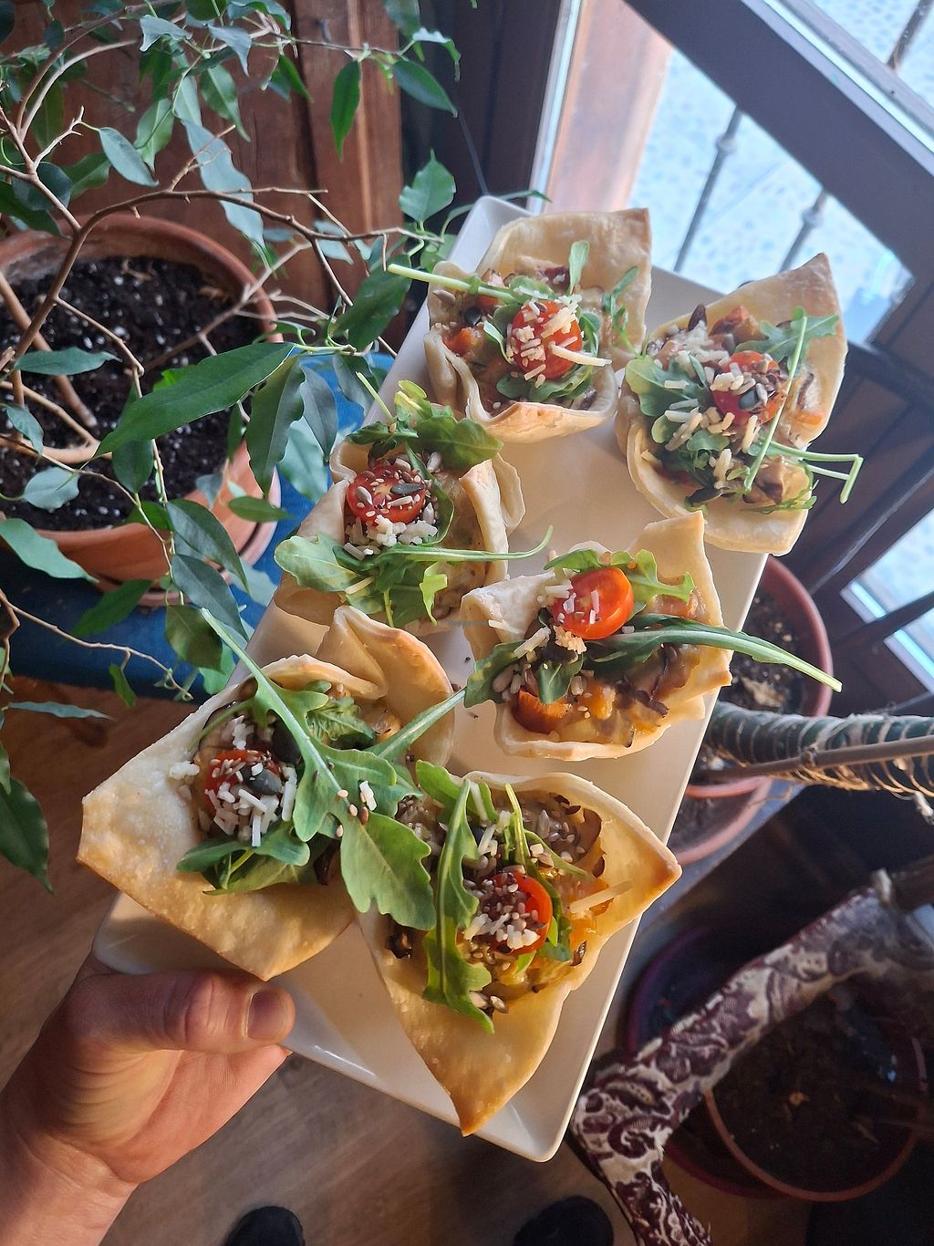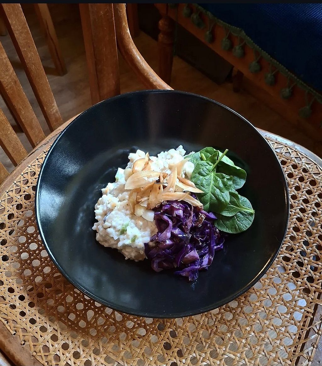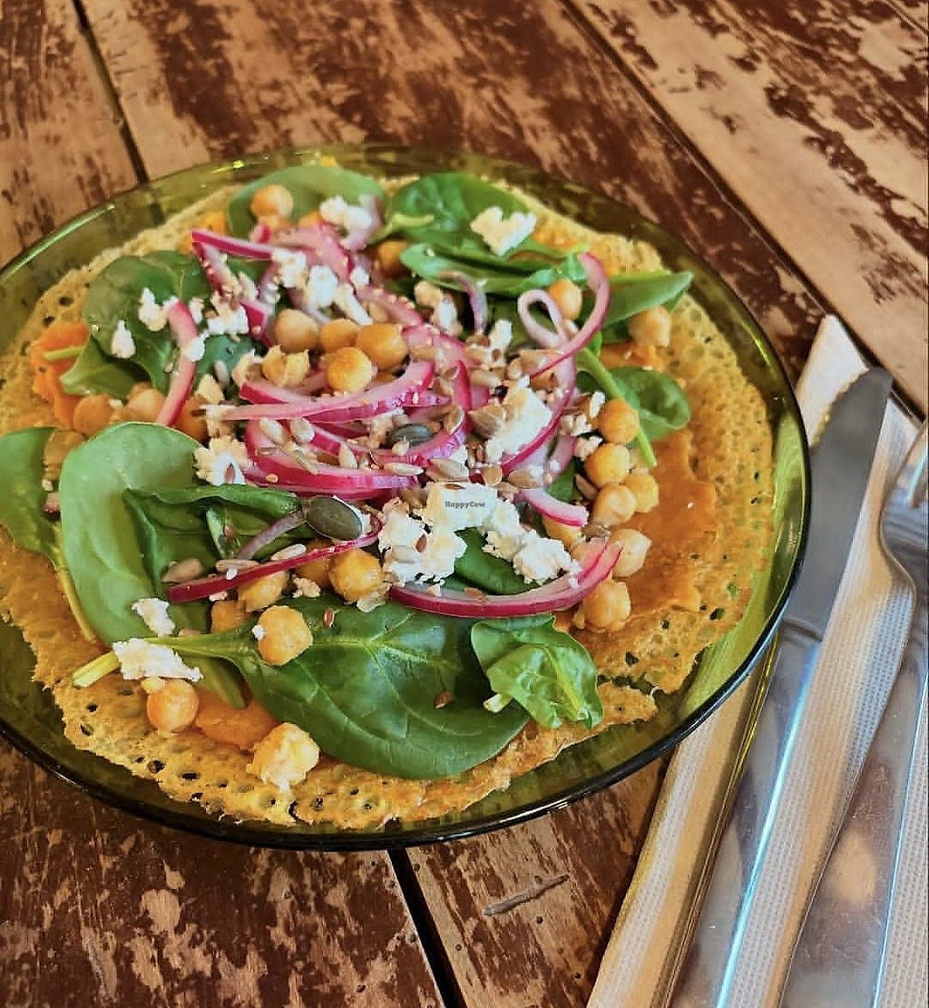 Vegetarian with vegan options. Opened approximately May 2919 and expanding the menu. Bar/tapas. Central location in an alley inside a city block accessed by 2 gateways in the 'back' of the block. Got style/funky. -- We were hungry and all other vegan options in town were closed (Monday). Super friendly staff.