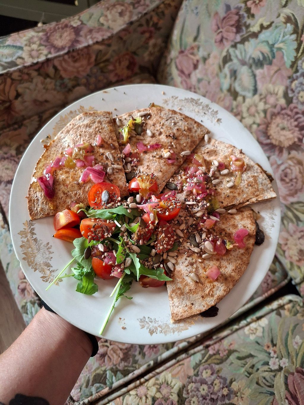 Probamos la quesadilla veganas, unos ñoquis y un arroz meloso riquísimo.