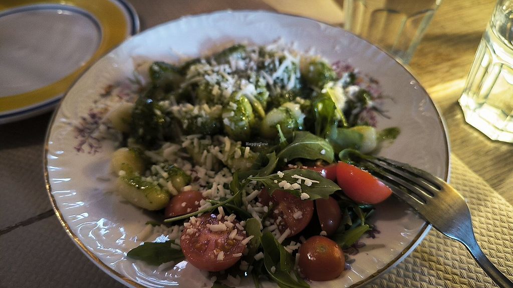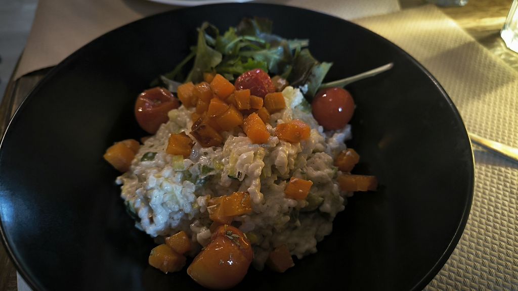 Vegetariano con muchas opciones veganas o vegamizables y comida digamos típica en un vegetariano. Pedimos gnochis con pesto y arroz meloso con verduras y de postre tartin de manzana. Todo correcto, sin aspavientos.