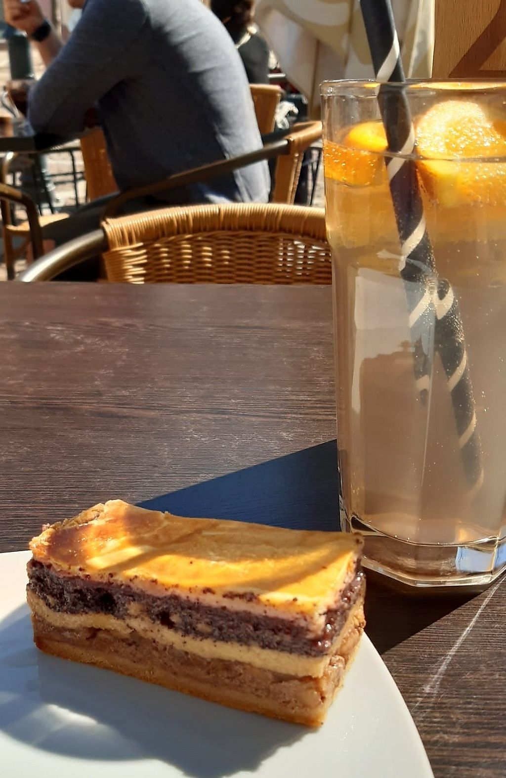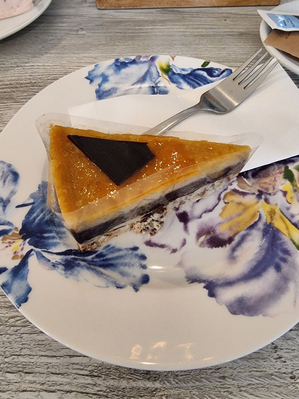 Mango maracuja coconut cake and Pumpkin Spice latte with almond milk