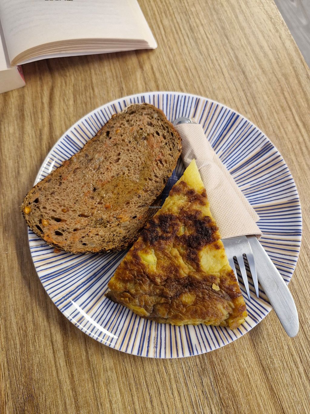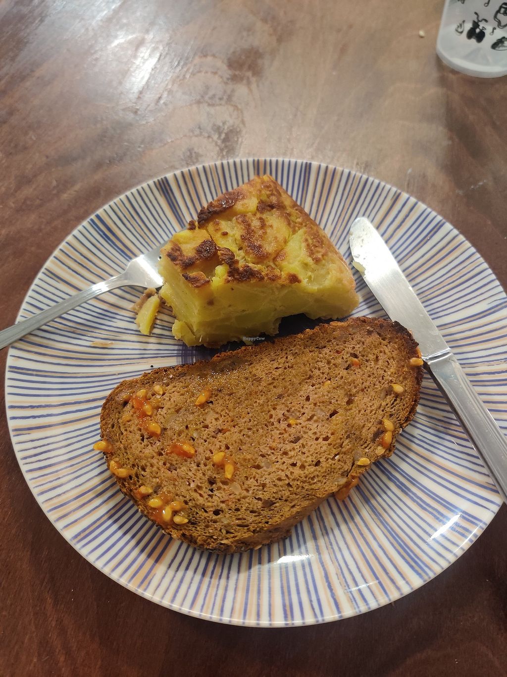 Truita vegana amb pa amb tomàquet i oli