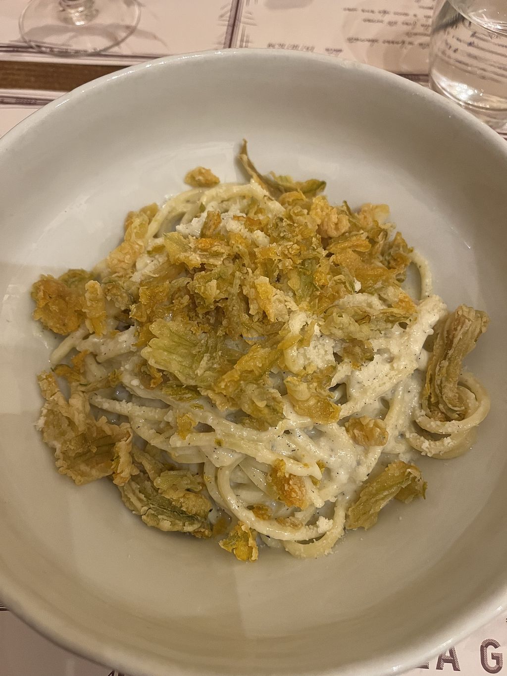 Other diners seemed happy with what they had ordered, lots of the fried courgette flower stuffed with cheese and Casio Pepe or pizzas.