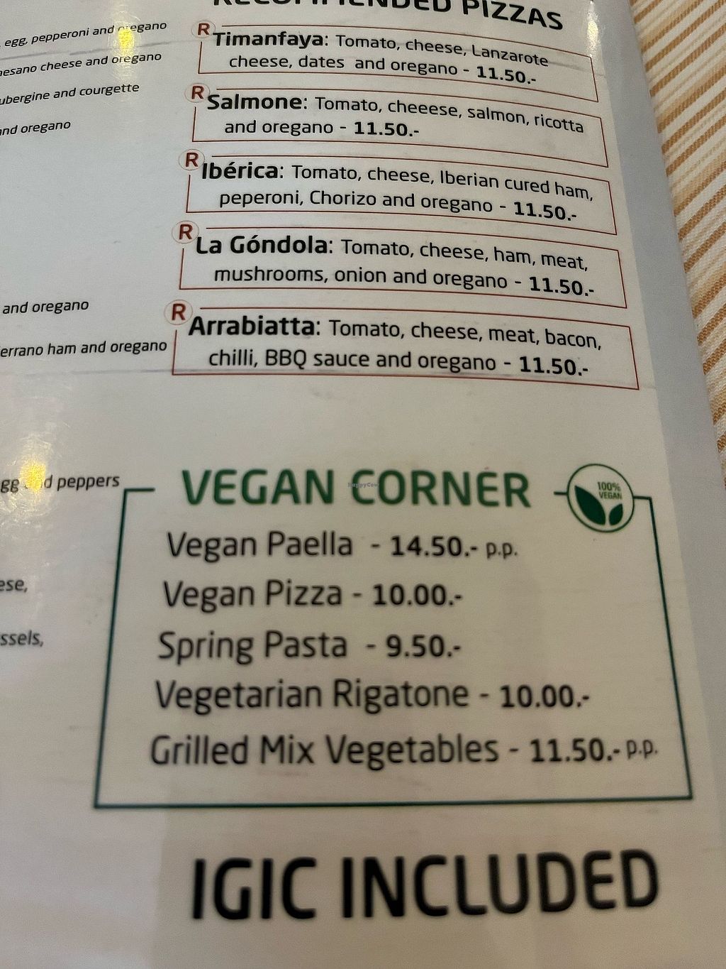 Like other reviewers I was a bit concerned that my pizza wasn't vegan when it arrived. It seemed like they had put a layer of violife over regular dairy mozzarella - although I didn't suffer with any stomach problems so maybe they've got some incredibly realistic vegan cheese in this random spot on Lanzarote?!