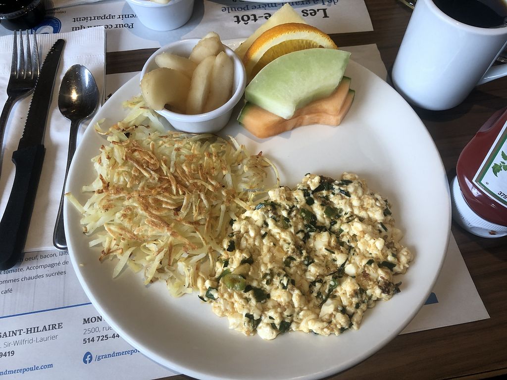 Lacto Ovo American Breakfast Non-veg Serves meat, vegan options available. Serves potatoes, vegan pancakes, scrambled tofu, toasts and fruits. There are at least 5 vegan options in a separate section of the menu. Removed Apr 2021 - limited vegan options. More