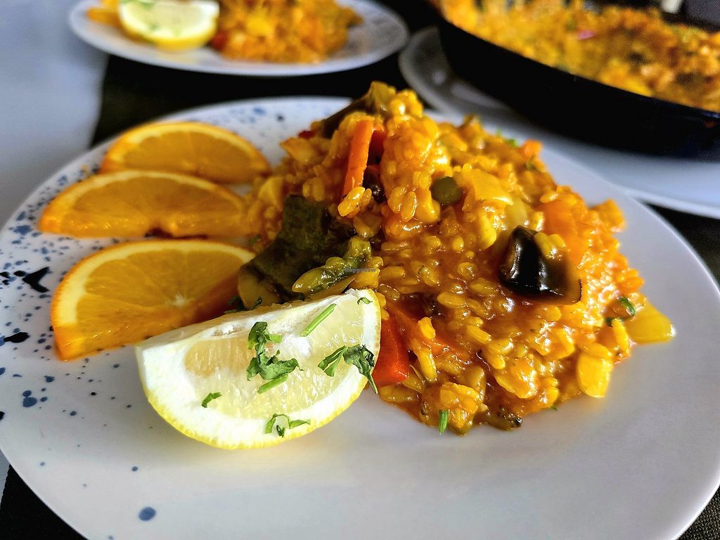 Not a lot of vegan options, but they can do a cheese-less pizza that was very healthy and tasty. Best was the vegan paella--you won't want to stop eating it! The bruschetta was fine but nothing special. Very friendly service and pleasant outdoor/indoor seating, although not in a very scenic neighborhood.