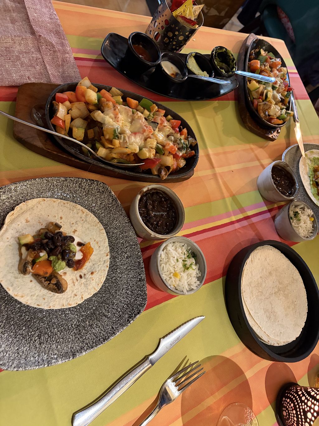 Veg fajitas with extra guacamole