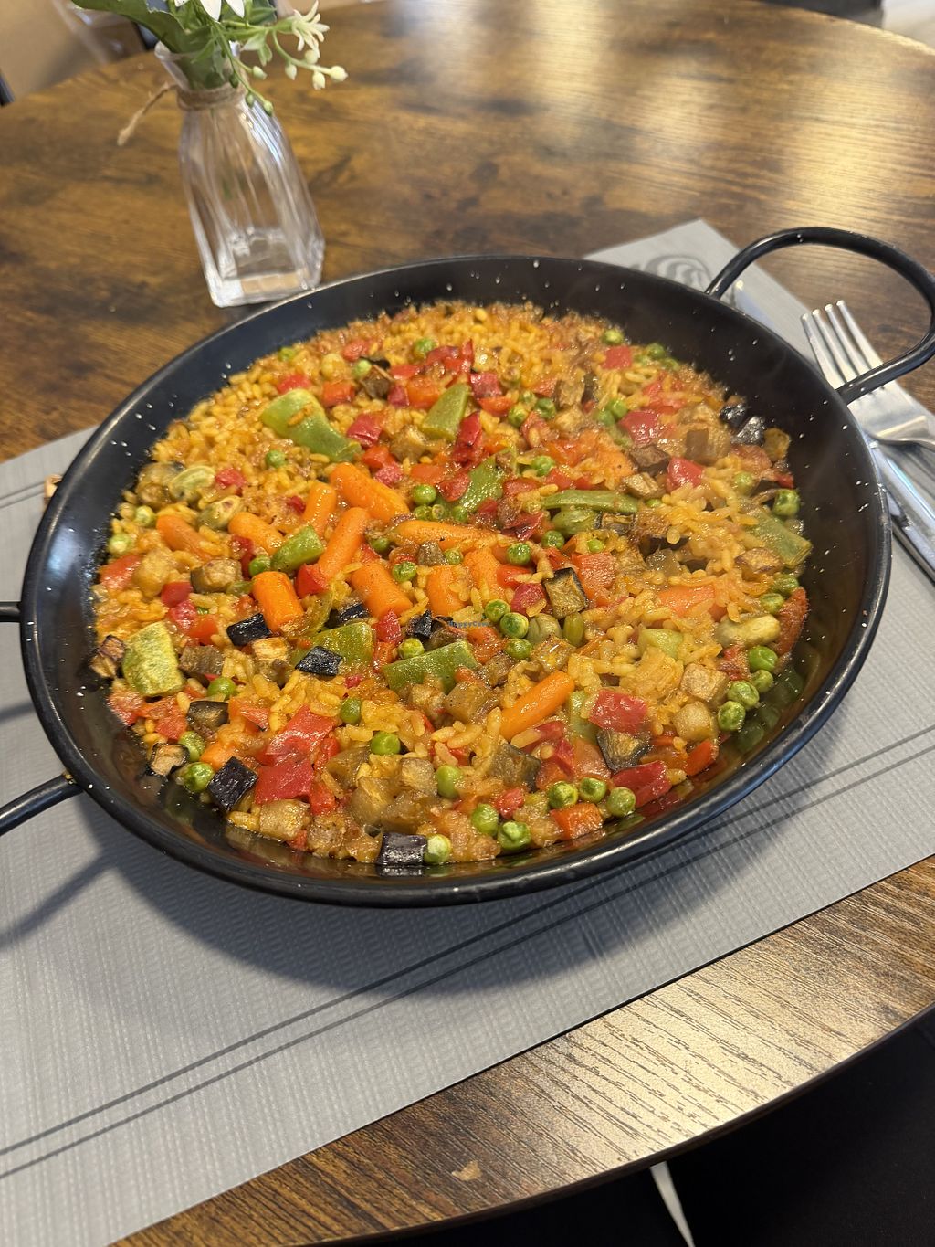 Their vegan paella was amazing. They had other vegan options but I was dreaming with their paella. The owners were very helpful and kind to a very tired pilgrim!