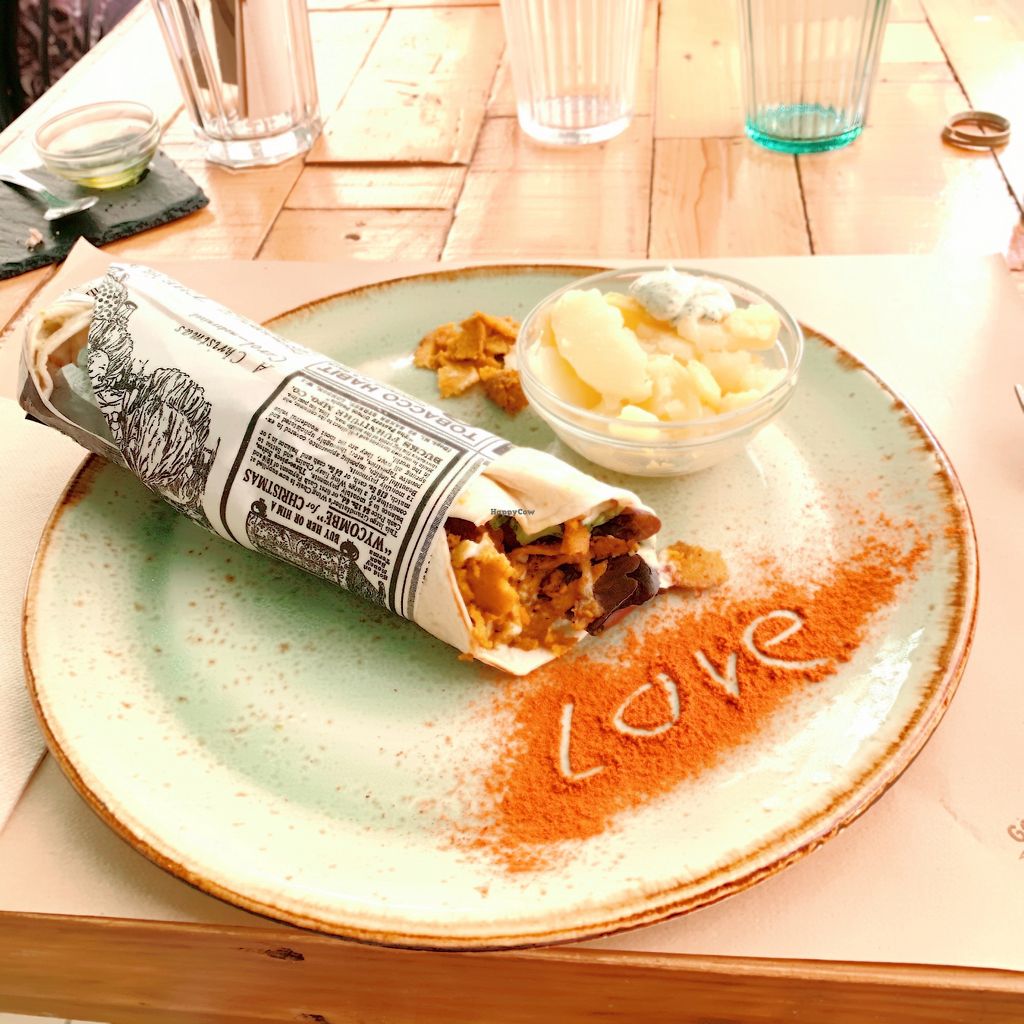 Seitan Kebab with Potatoes and Tzatziki