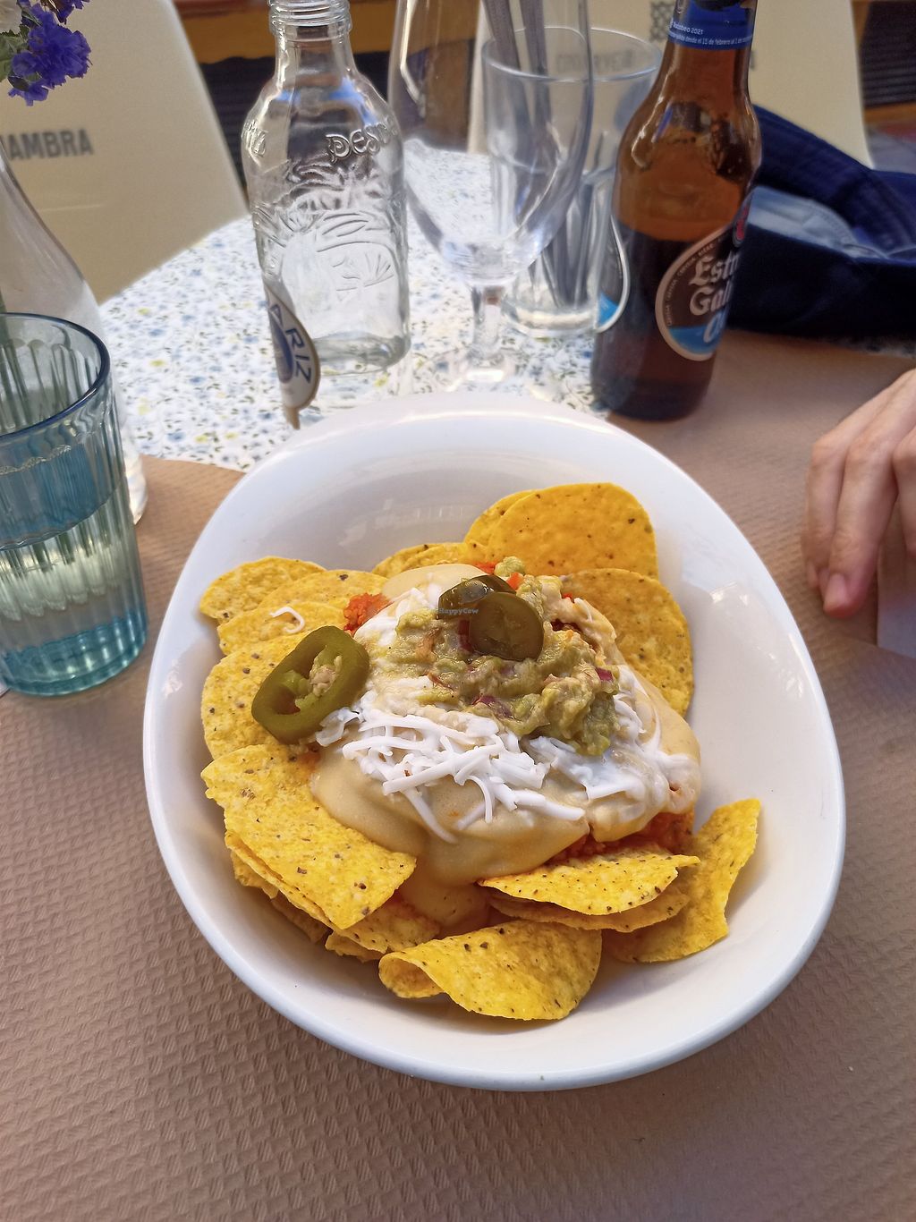 Pet friendly vegan restaurant. Had lunch there. The food was delicious and packed with flavour. We had the iberica platter to start and then the "No Fish" with potatoes and Ali-Oli, and the shawarma wrap with potatoes and Ali-Oli. Was good portions and well priced. I think the 3 plates of food and 2 rounds of drinks added up to about €37. Customer service was great too