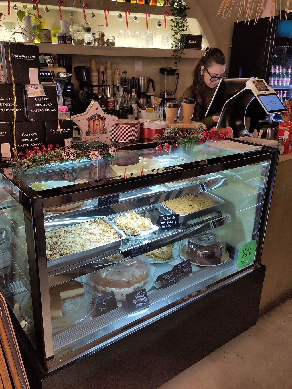 Dos empanadas, frutas rojo cheesecake, un café y little cookie sandwic…