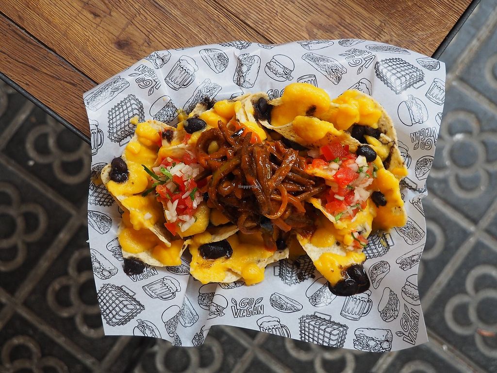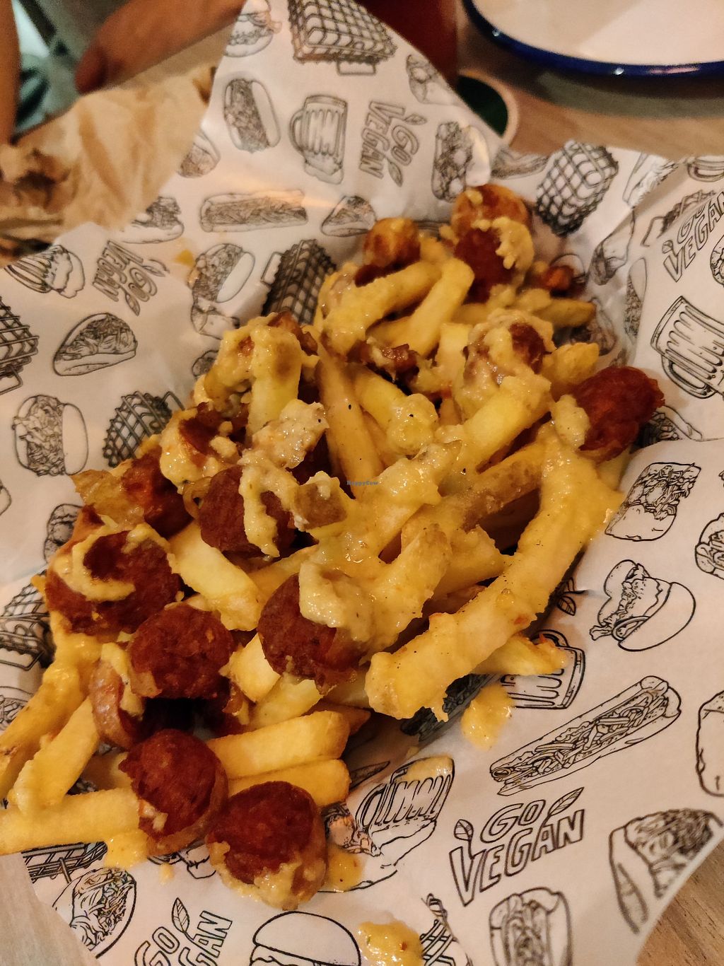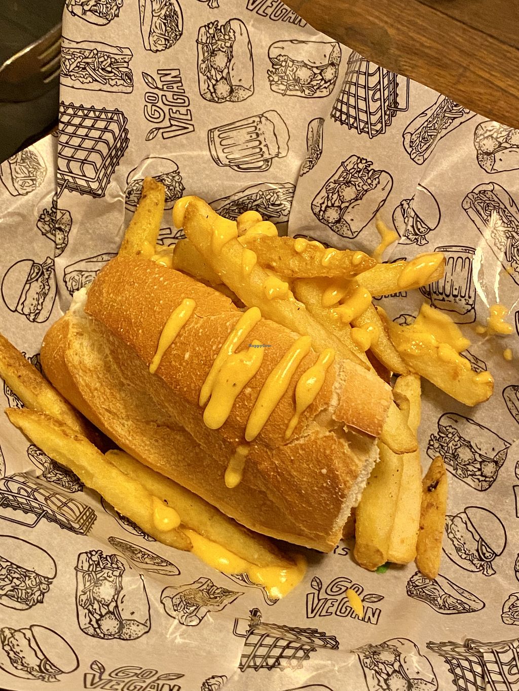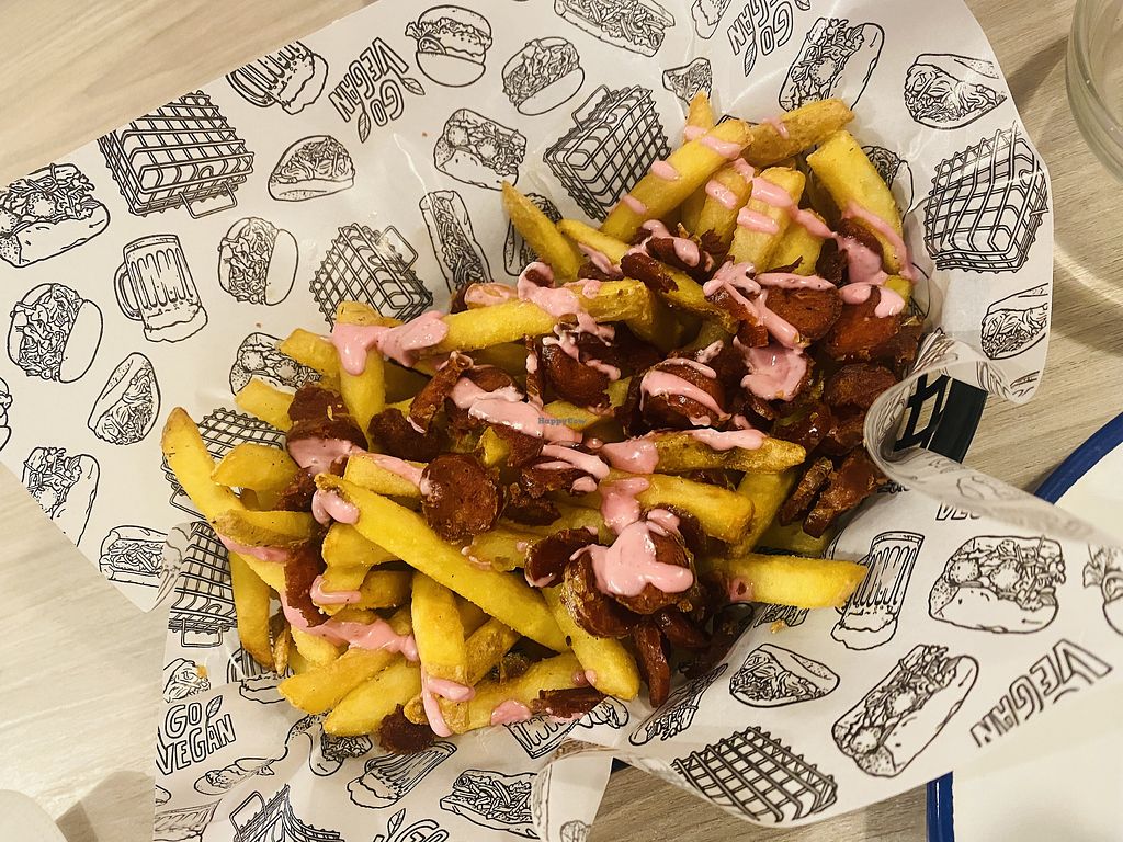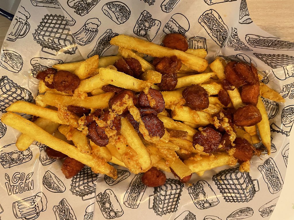 Serves all-vegan street food from the world, including sandwiches with heura, Beyond Meat, jackfruit, shitake mushrooms, etc. Also has nachos with cheese and banana meat on top; ceviche; Argentinian potatoes with chorizo & chimichurri sauce on top, plus many more. Reported closed April 2024.