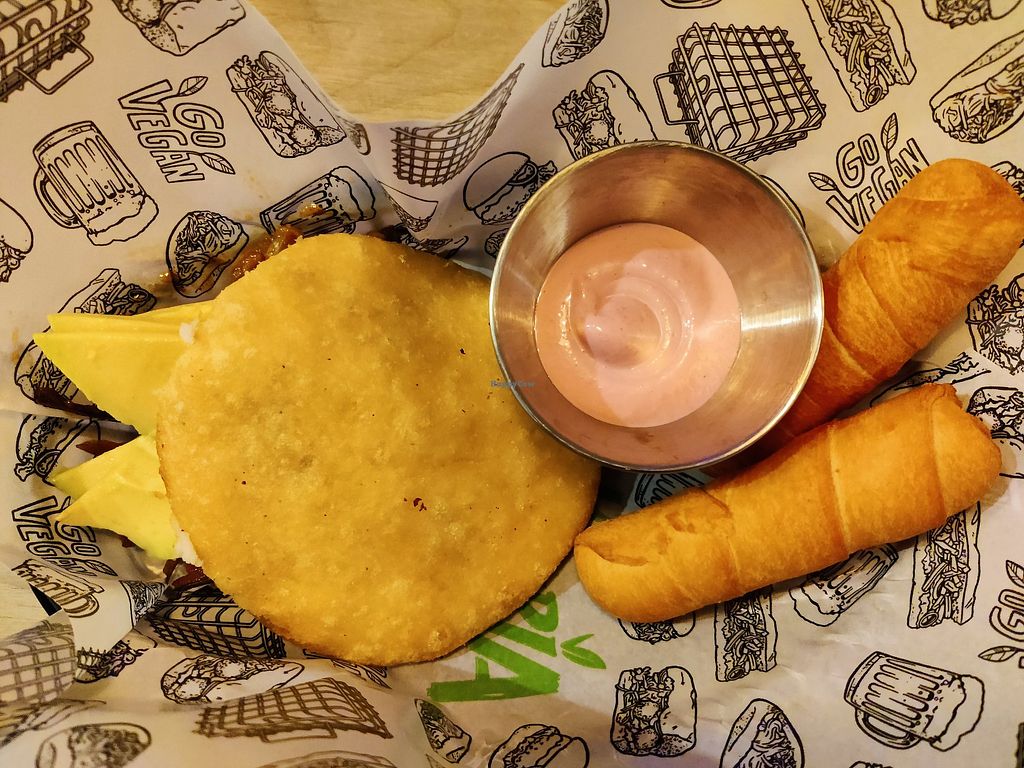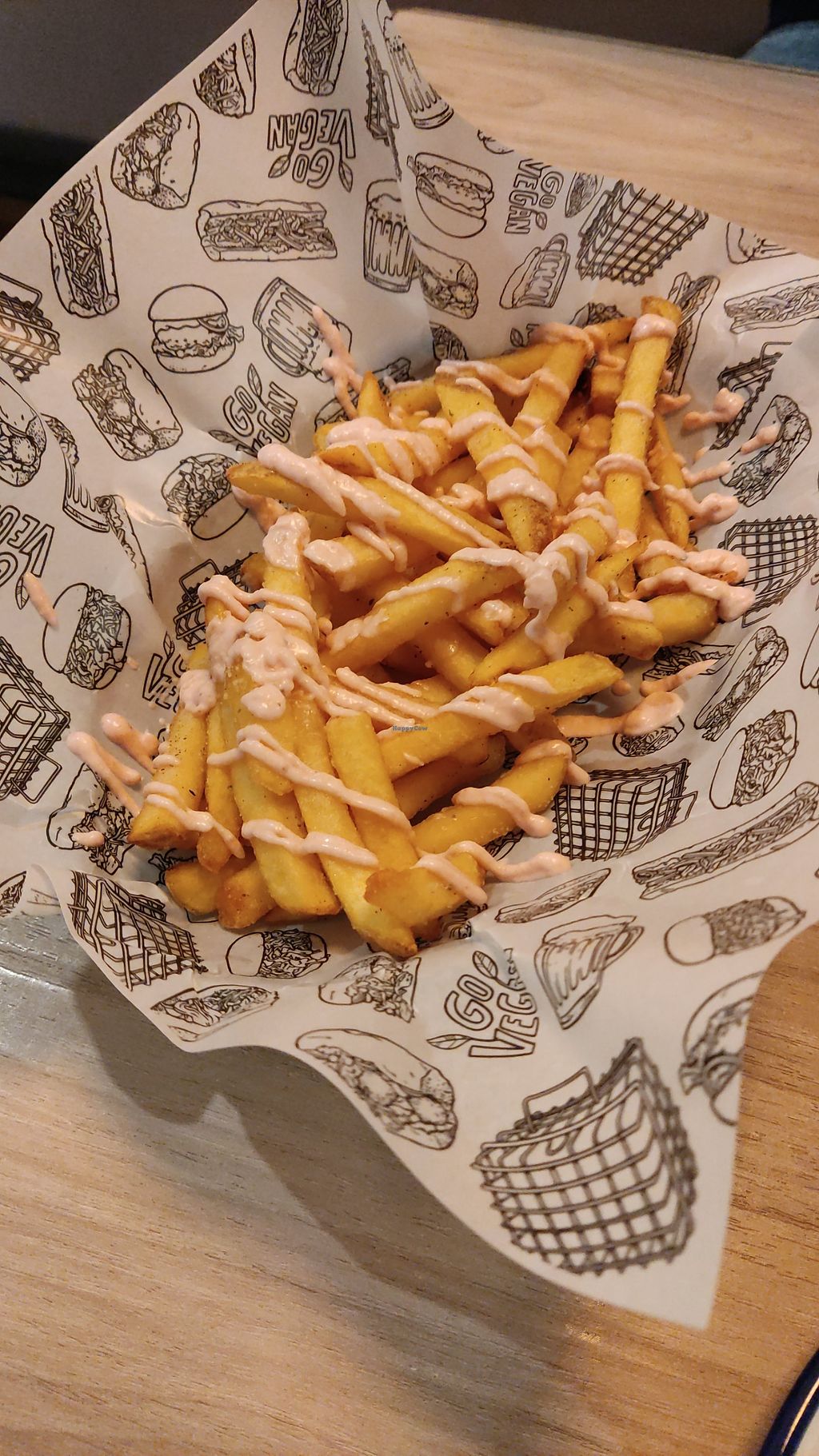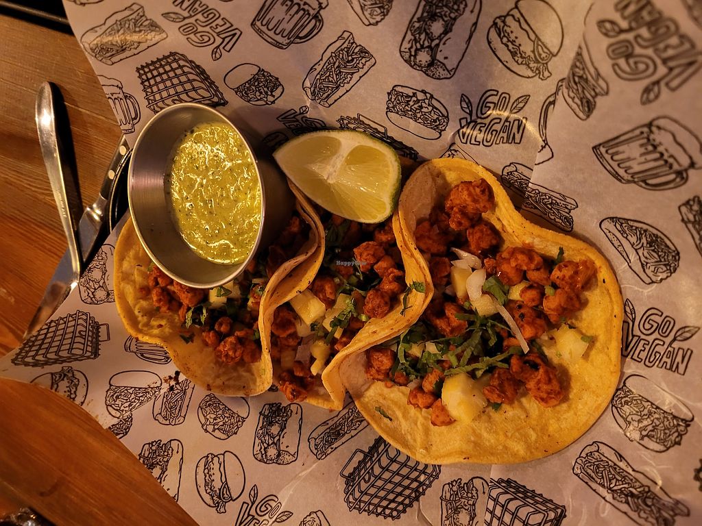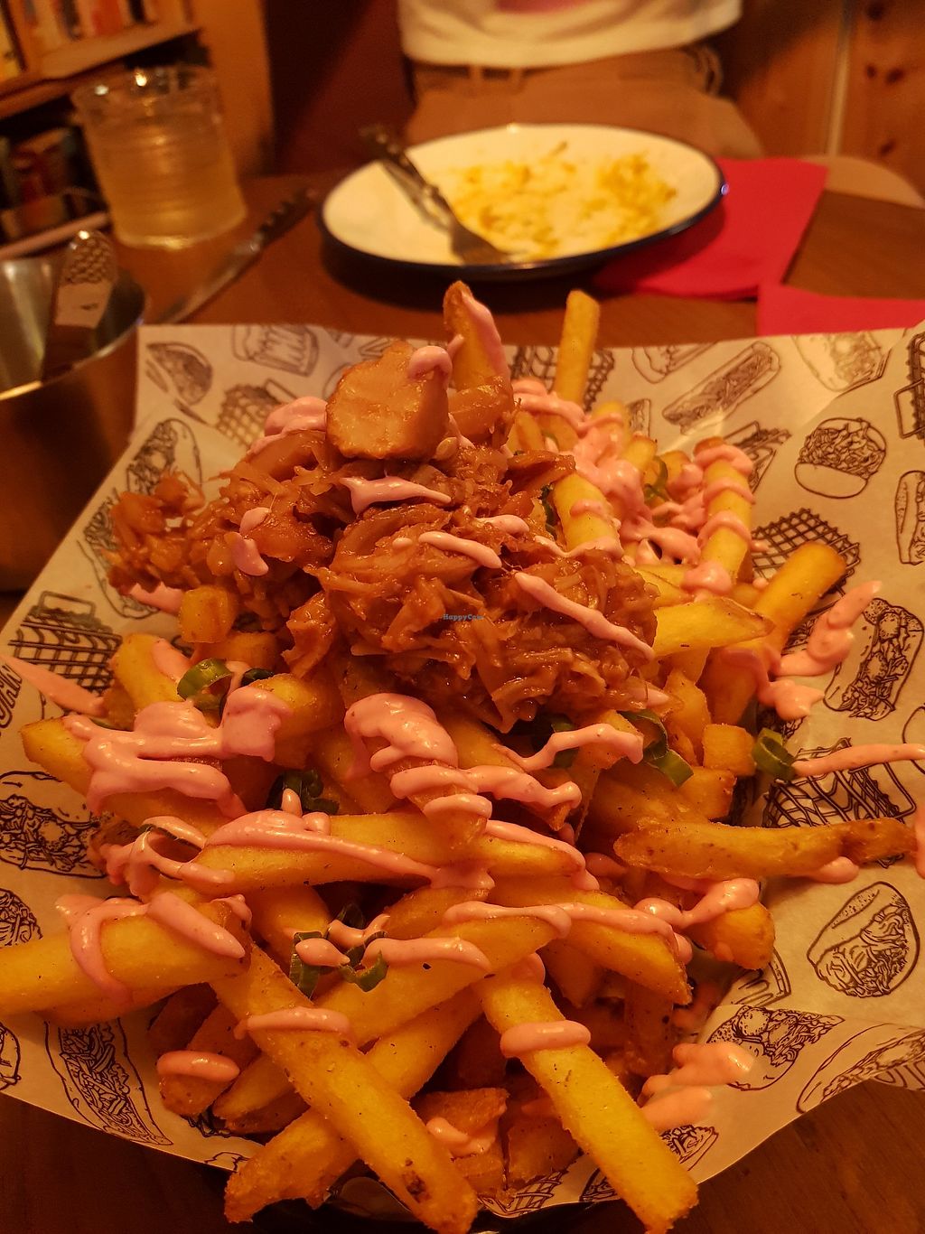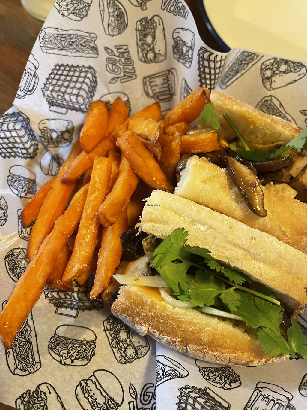 Serves all-vegan street food from the world, including sandwiches with heura, Beyond Meat, jackfruit, shitake mushrooms, etc. Also has nachos with cheese and banana meat on top; ceviche; Argentinian potatoes with chorizo & chimichurri sauce on top, plus many more. Reported closed April 2024.