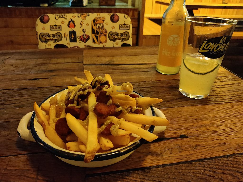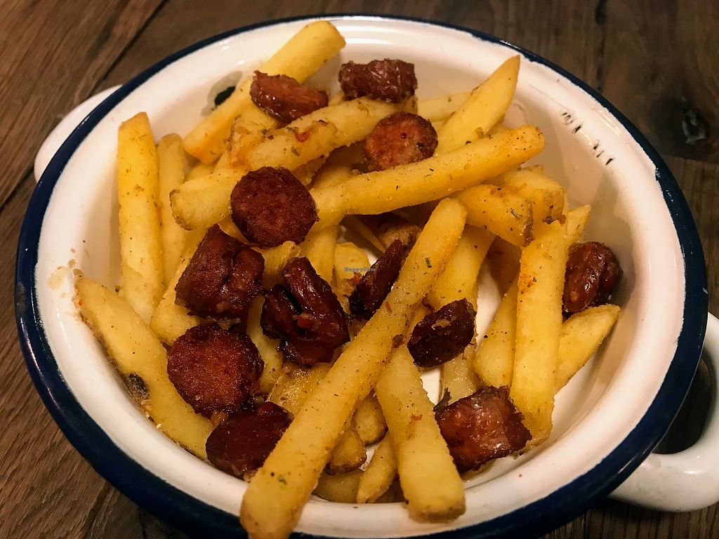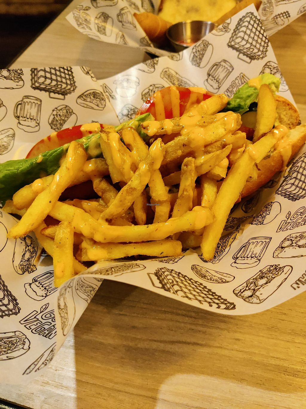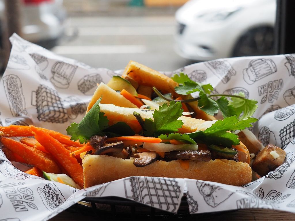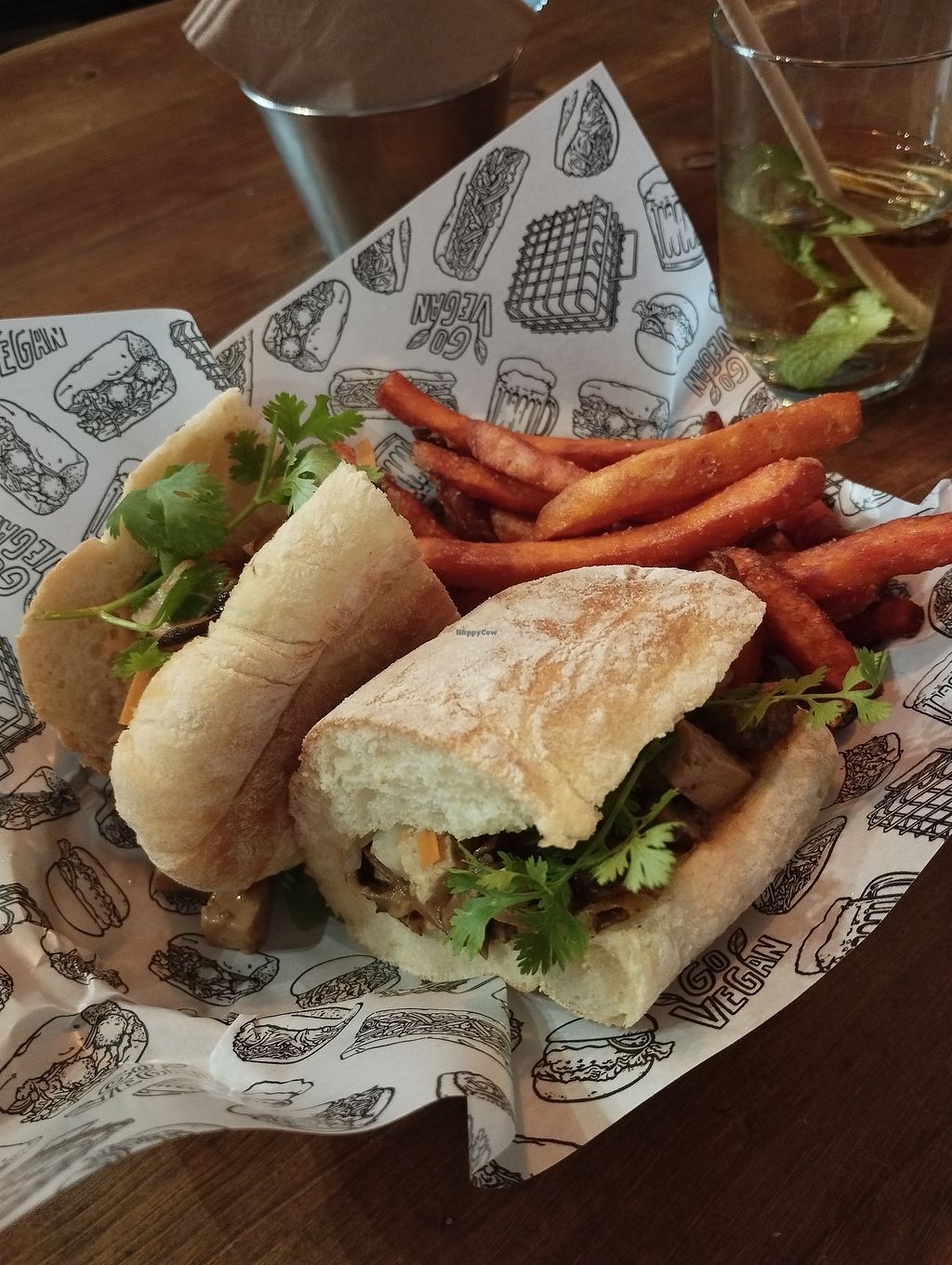 Serves all-vegan street food from the world, including sandwiches with heura, Beyond Meat, jackfruit, shitake mushrooms, etc. Also has nachos with cheese and banana meat on top; ceviche; Argentinian potatoes with chorizo & chimichurri sauce on top, plus many more. Reported closed April 2024.