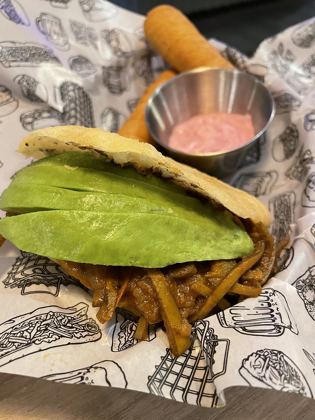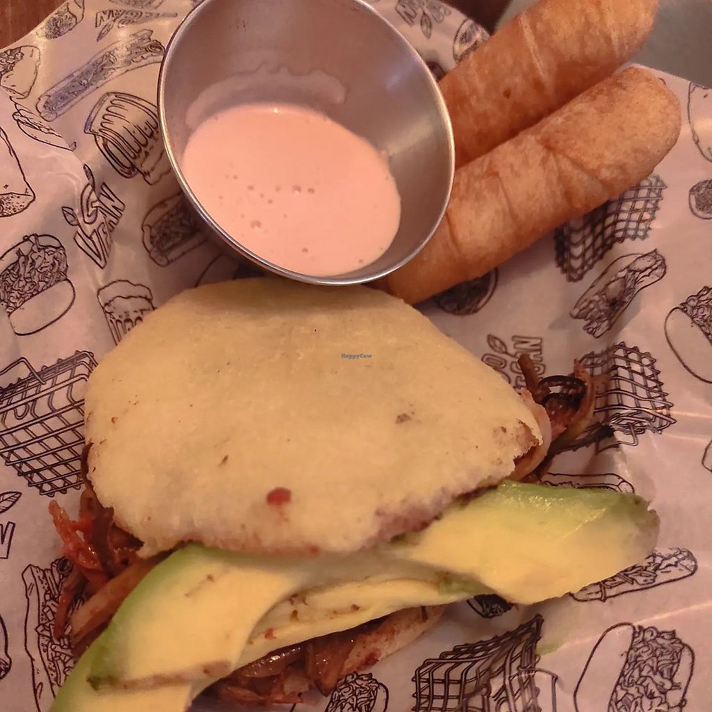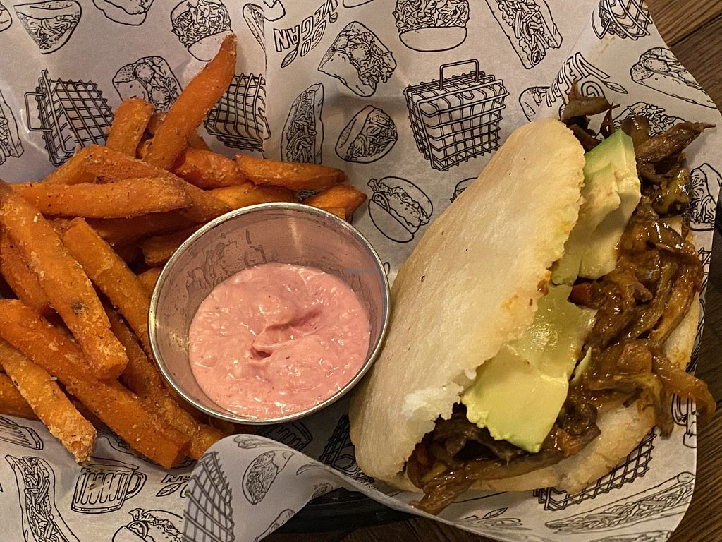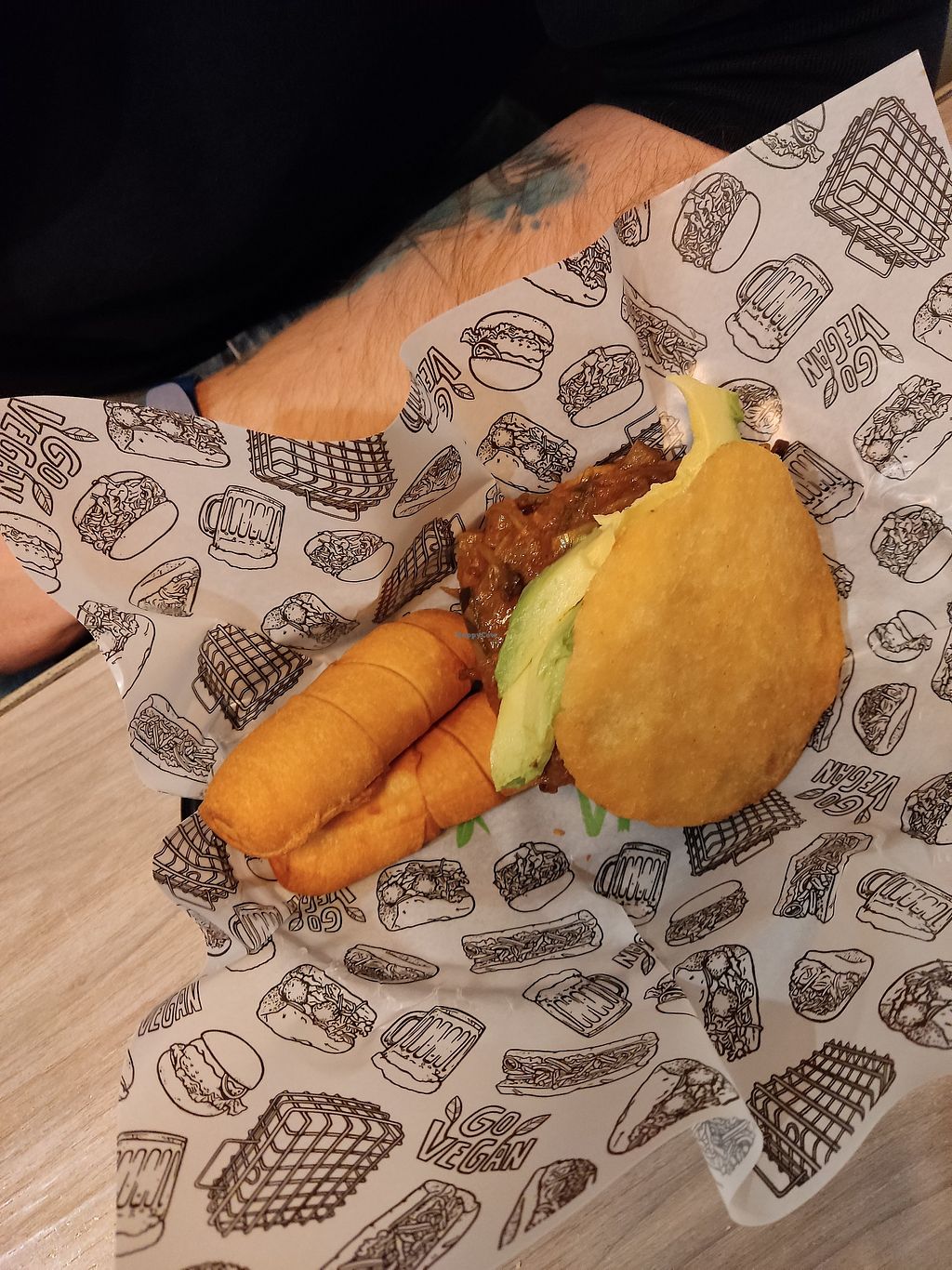 Me pedí unas arepas que venían con tequeños. La carne falsa estaba muy buena y el queso falso de los tequeños delicioso. El personal muy amable y el espacio muy bonito. Muchísimas opciones. Lo recomiendo.
