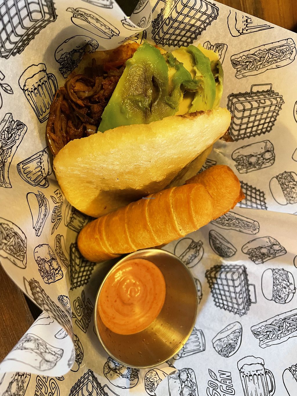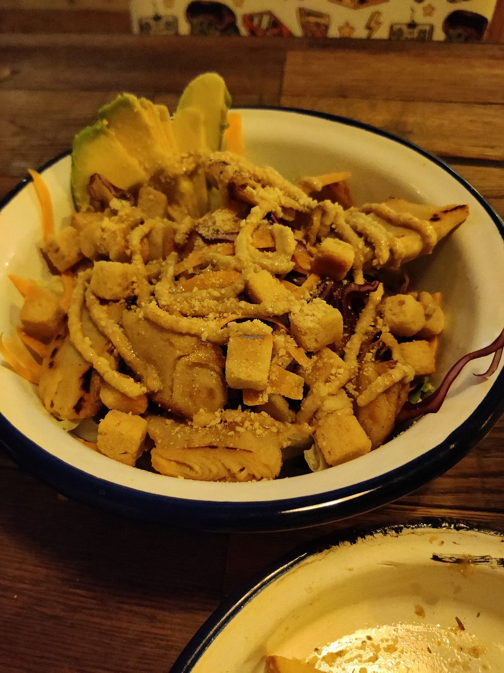 Local muy chulo, rollo street art, comida tipo latina, mejicana, venezolana,, argentina, todo muy delicioso y con buenas raciones.