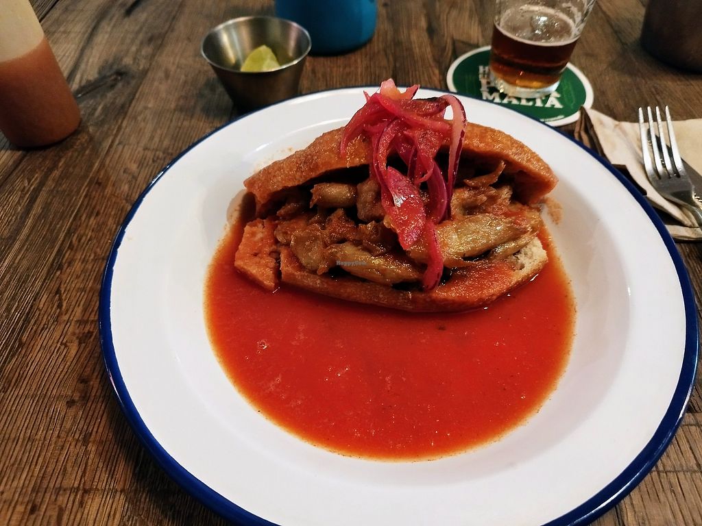 This restaurant serves mexican vegan food, it has a lot of different plates, the person that serves the food it was nice, he explained to me the different dishes that they had, and the food it was so good, if you go to this restaurant you have to try the banana bread, they serve it with strawberry jam and pieces of strawberri and it's delicious.