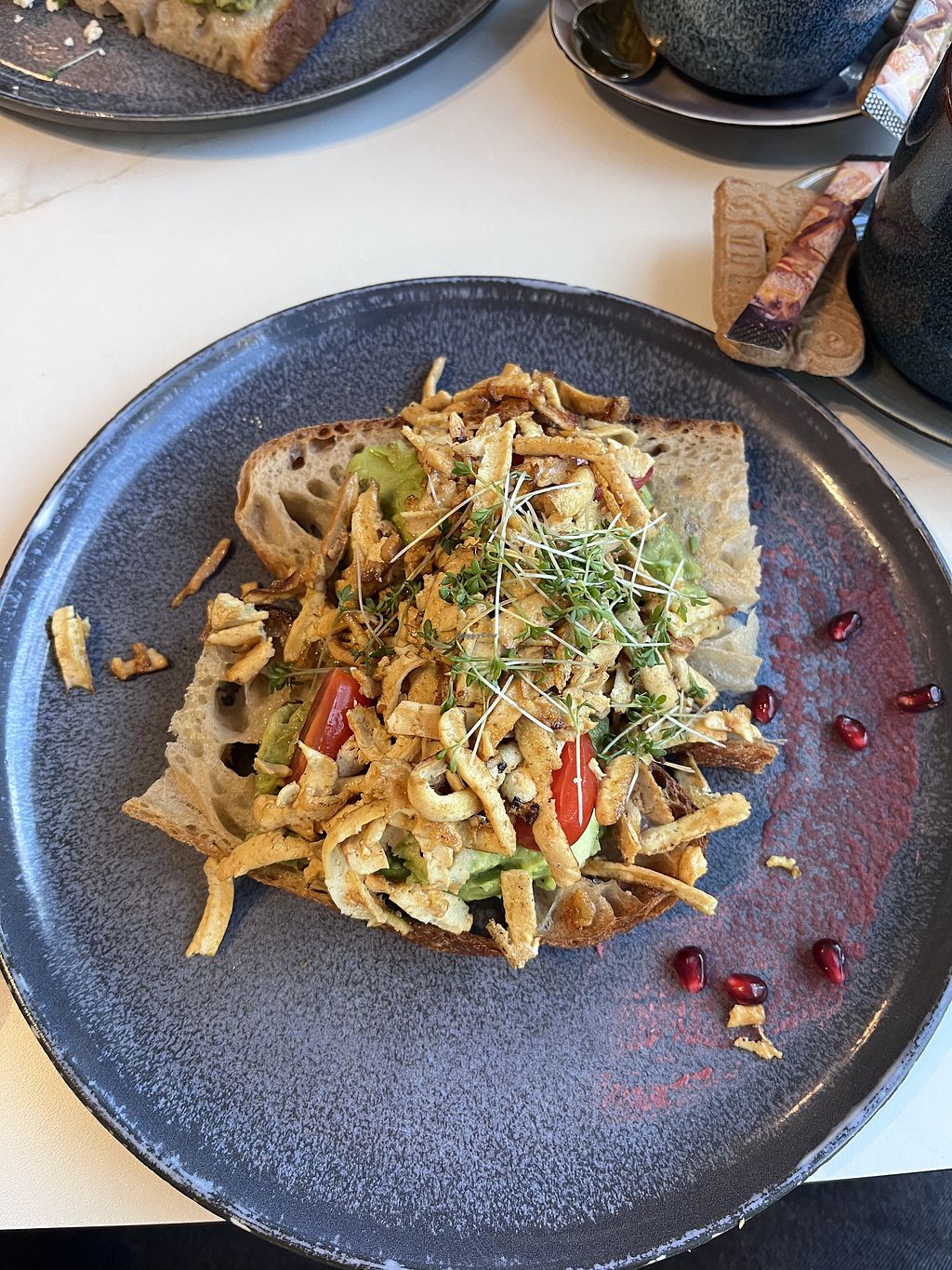 Es gibt einige vegane Angebote, das Sauerteigbrot schmeckt sehr gut. Man kann seine Zeit im Café genießen. Für die Hafermilch verlangen sie keinen Aufpreis.