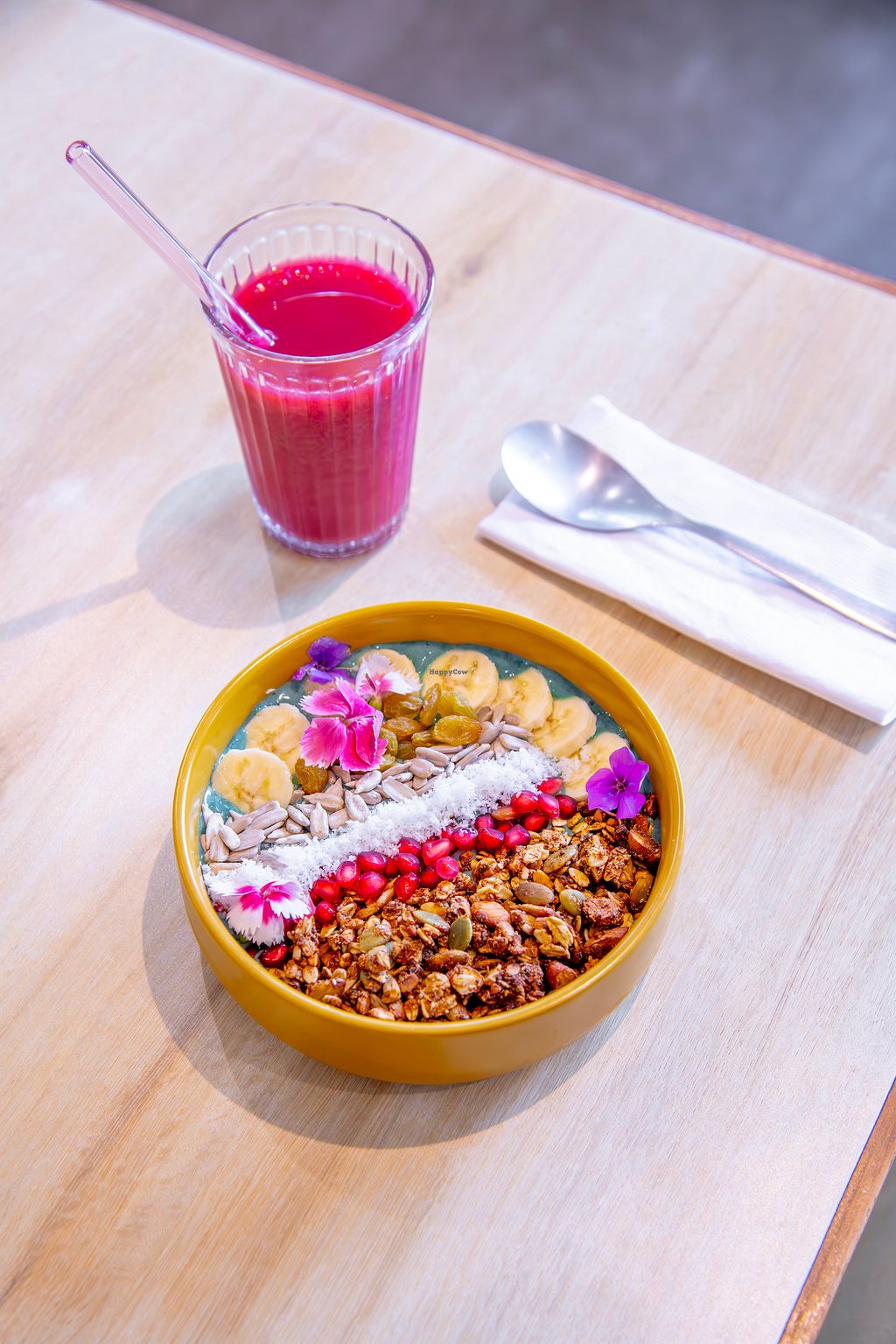 Blue moon Smoothie, with bananas, blue spirulina, probiotics, coconut …