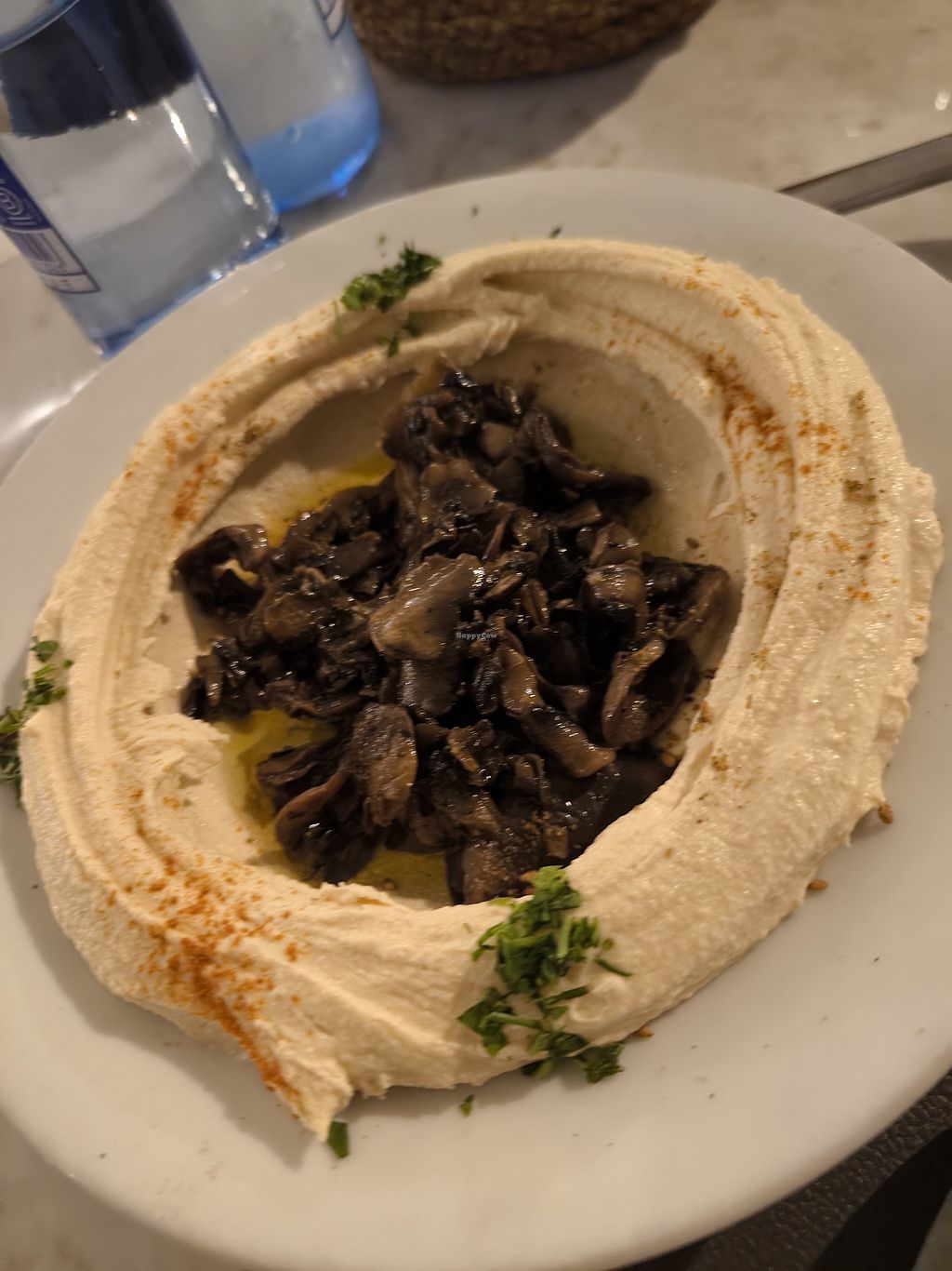 Hummus de garbanzos con cebolla caramelizada