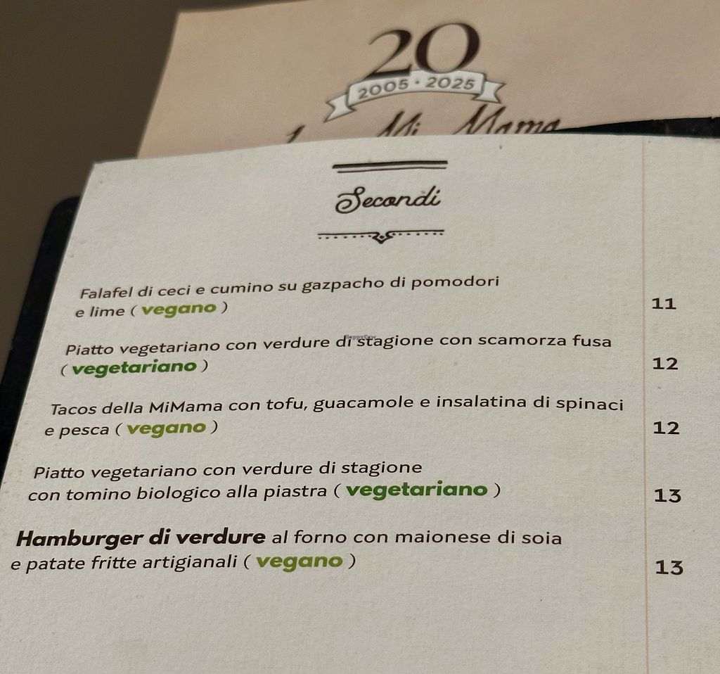 Difficile trovare ristoranti in questa zona che abbiamo a menù opzioni vegane e lo facciano dall’antipasto al dolce: La Mi Mama lo fa poi in un ambiente carino ed accogliente, con un buon servizio, con piatti bene presentati e porzioni abbondanti.