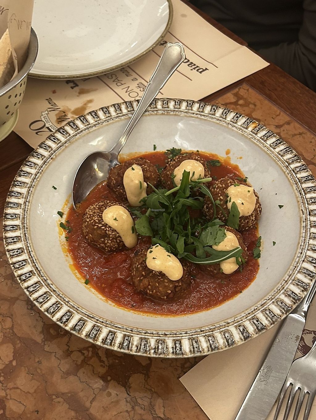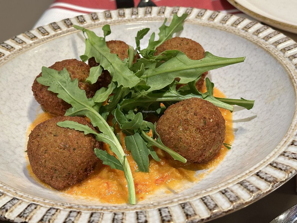 Came to eat between lunch and dinner time and they had a reduced menu that still had 3 vegan options. I had the cauliflower vegan balls with spiced tomato and pumpkin's mayonnaise and they were delicious. Nutritionally speaking I think the dish lacked a better sources of protein but still was delicious!