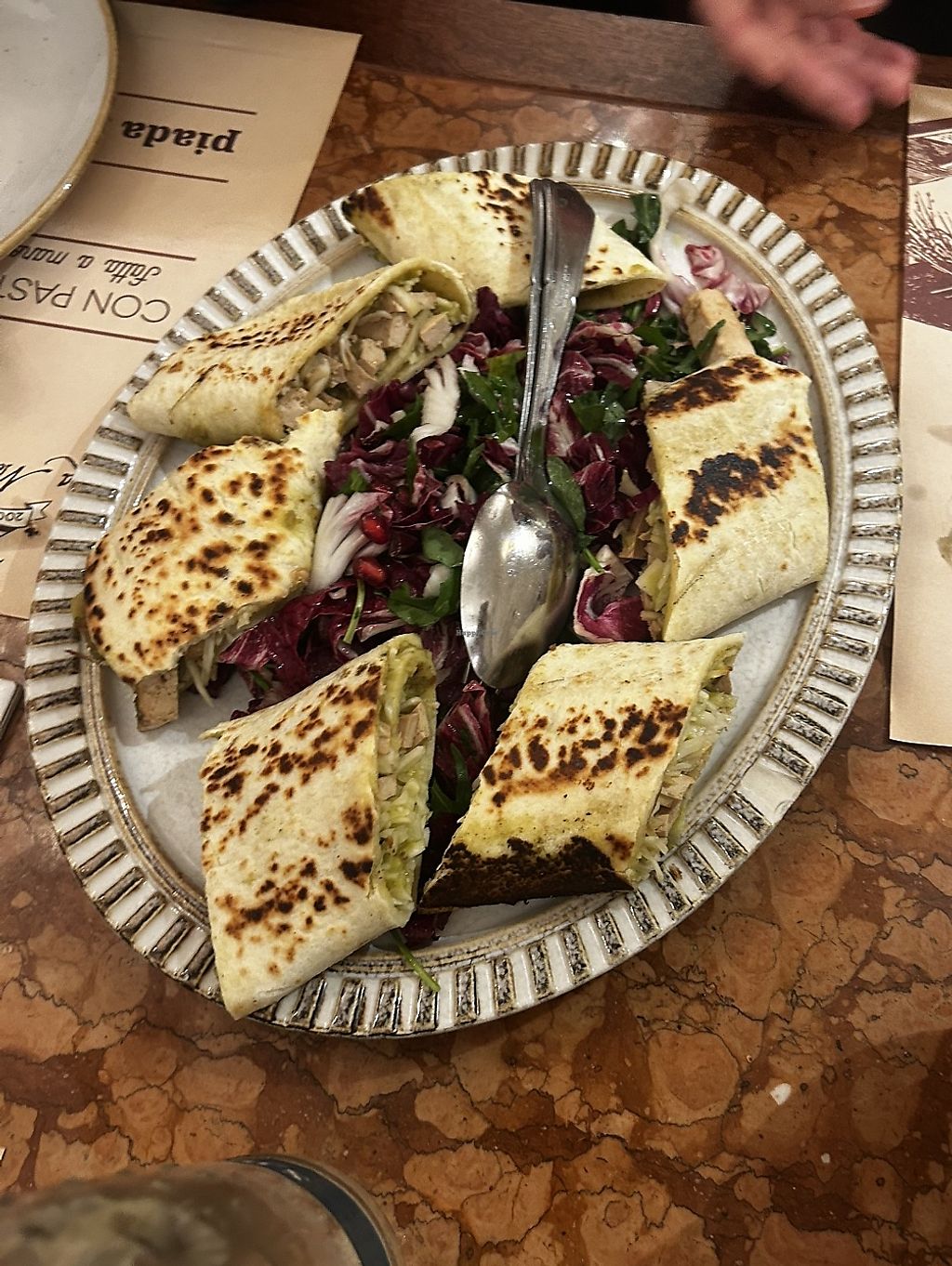 We enjoyed our dinner here. Ordering was easy thanks to the clearly labeled veggie menu. The piadina—a traditional flatbread from this region—was made fresh and served as table bread, which was a nice touch. Food was good and staff was friendly. The only reason I took a star off was one of the waitstaff kept coughing throughout the evening without covering their mouth or wearing a mask, which made us a little uneasy.